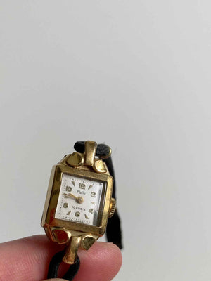True Vintage Uhr schmal gold schwarz Armbanduhr Swiss Art Deco Schweiz