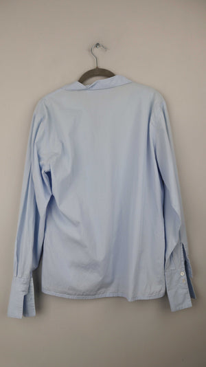 Hellblaues Hemd von Trust Shirt Company. Ein Knopf auf einer Seite ist halb gebrochen. Sie passt einer 38 M und ist sonst super vom Zustand. 53 cm Achselweite und 62 cm Länge. Plus Versand