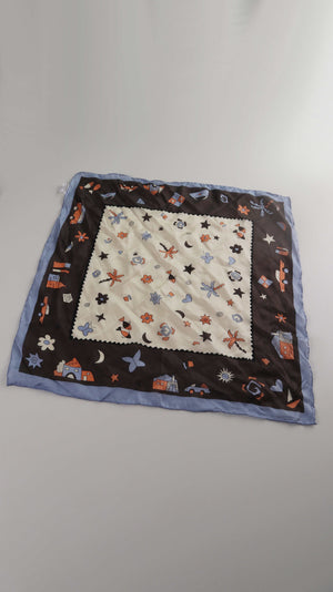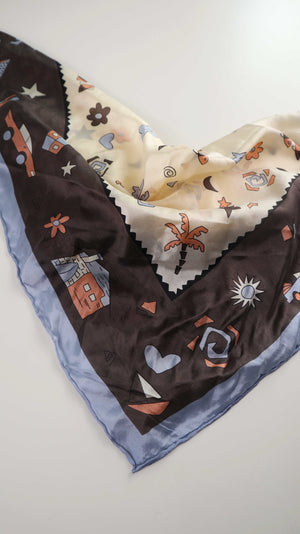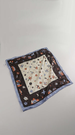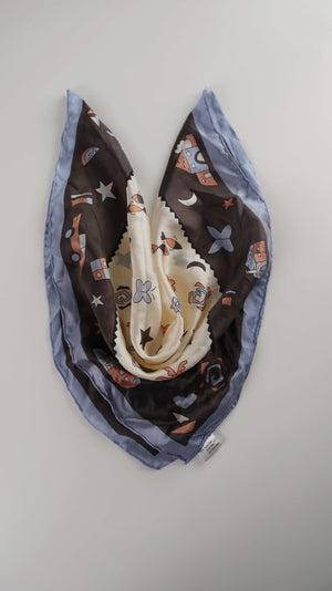 Tuch Seidentuch Silke Blau braun Halstuch Kopftuch Vintage