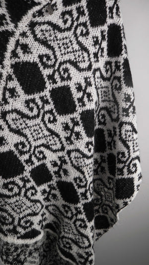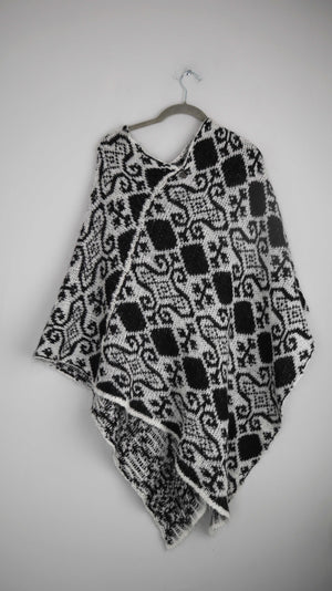 Two Blue Sisters Poncho Cape schwarz weiß gemustert Einheitsgröße Mohair
