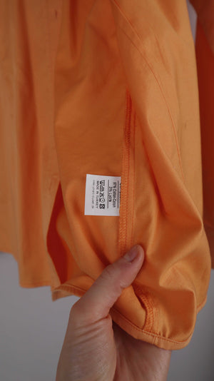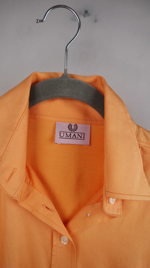 Einfarbige Bluse in einem hellen Orange von Umani. Sie passt einer 38 M ideal, im Etikett steht M/ L. 48 cm Achselweite und 72 cm Länge. Plus Versand