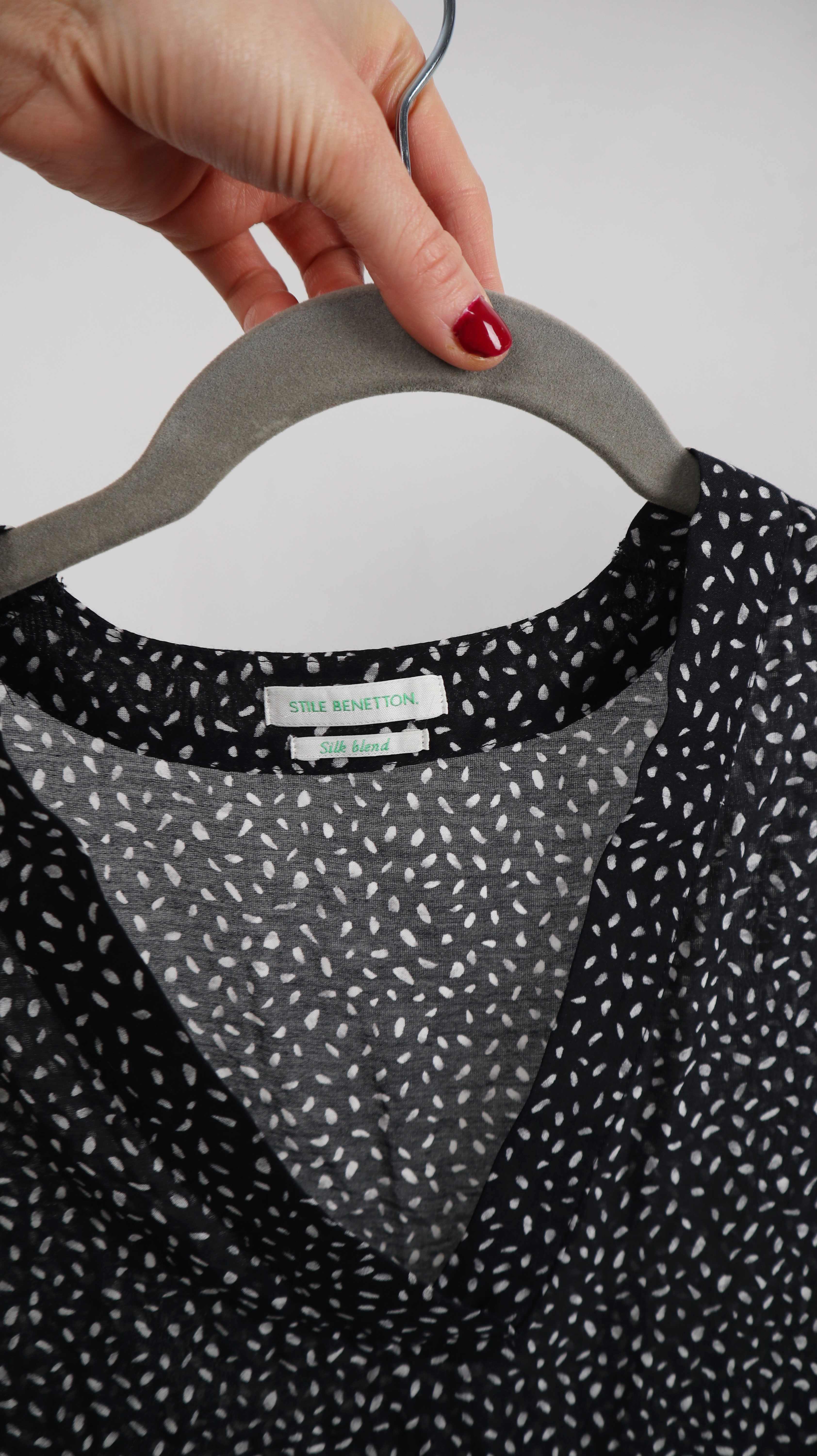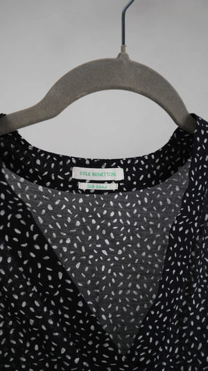 United Colors of Benetton Bluse Shirt schwarz weiß Top gepunktet 38 M