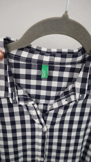 United Colors of Benetton Hemd Bluse kariert schwarz weiß 40 L