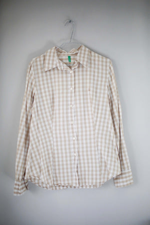 United Colors of Benetton Hemd Shirt Bluse beige braun kariert 38 M