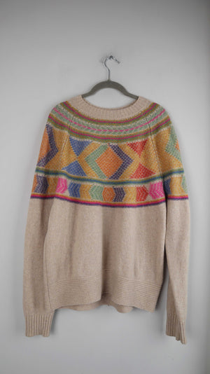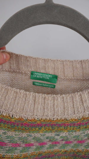 United Colors of Benetton Pullover Wolle Creme Norwegermuster 36 S Shetland