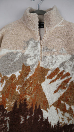 Fleecepullover von Urban Outfitters in S mit Bergmotiv. 59 cm Achselweite und 62 cm Länge. Plus Versand