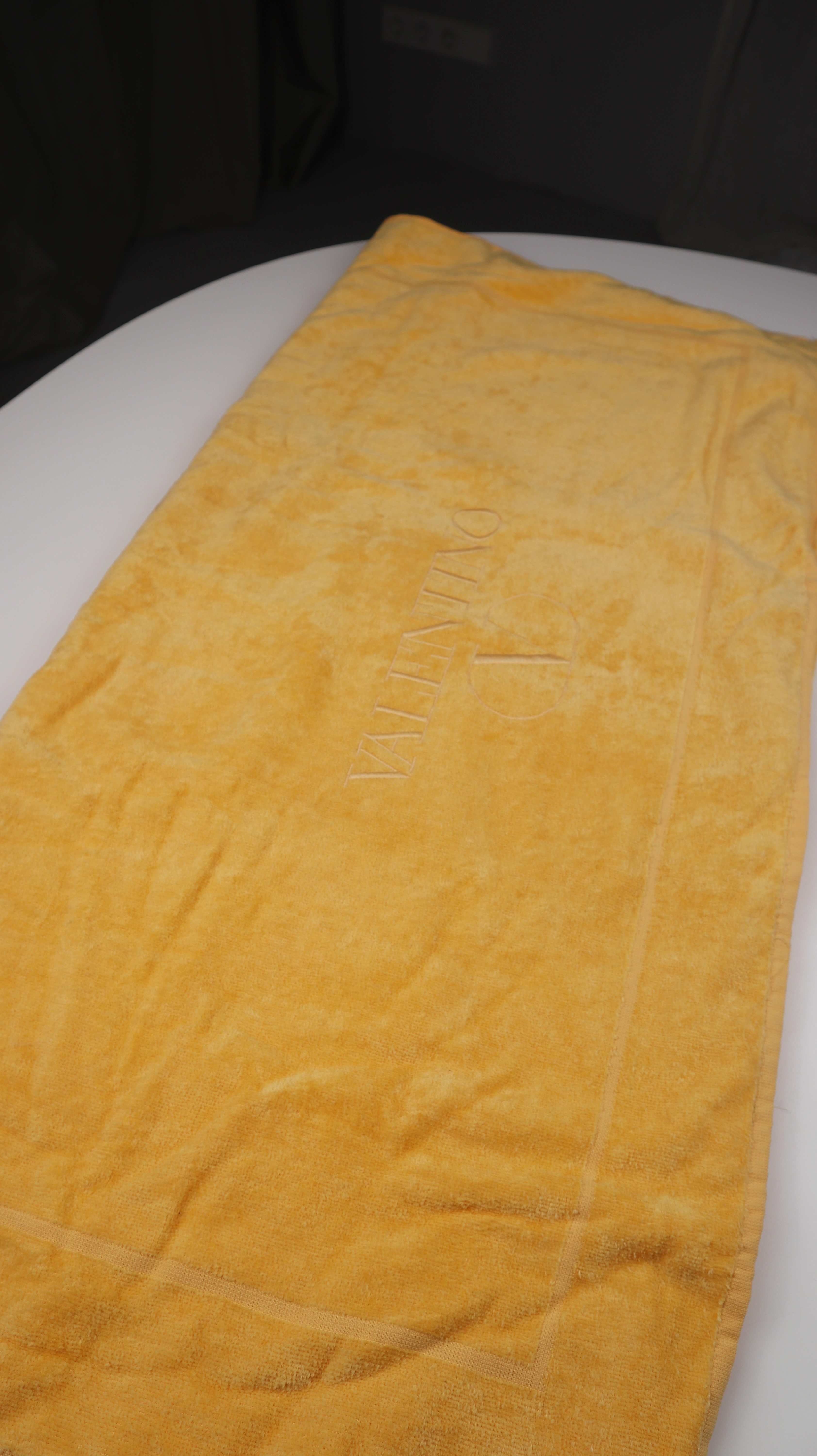 Großes gelbes, neues Badetuch von Valentino. 90 cm Breite. Neu in der Plastikhülle. Plus Versand