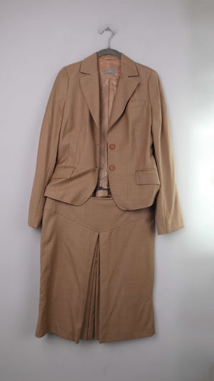 Van Laack Set Anzug Kostüm Braun 38 M Rock Blazer Schurwolle