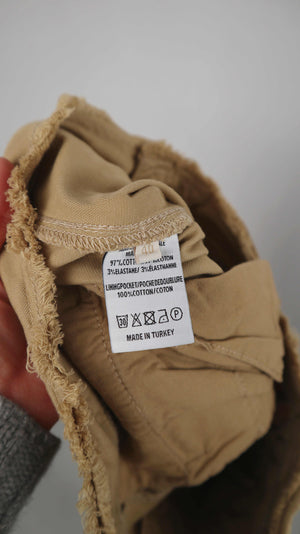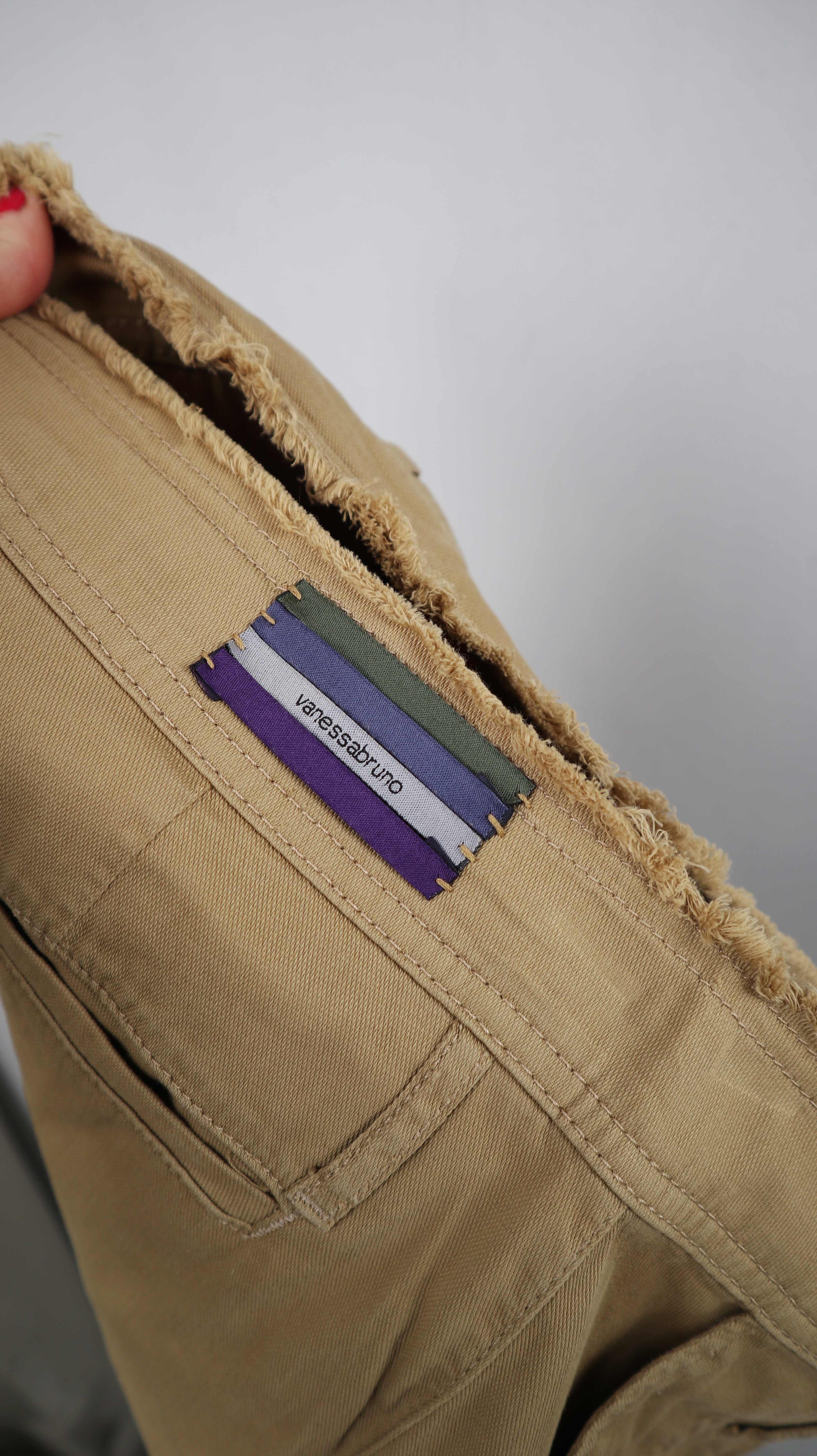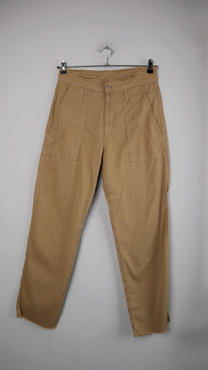 Beige Stoffhose von Vanessa Bruno in einer ausgeschilderten 40. 40 cm Bundweite, 33 cm Schritthöhe und 73 cm Innenbeinlänge. Plus Versand