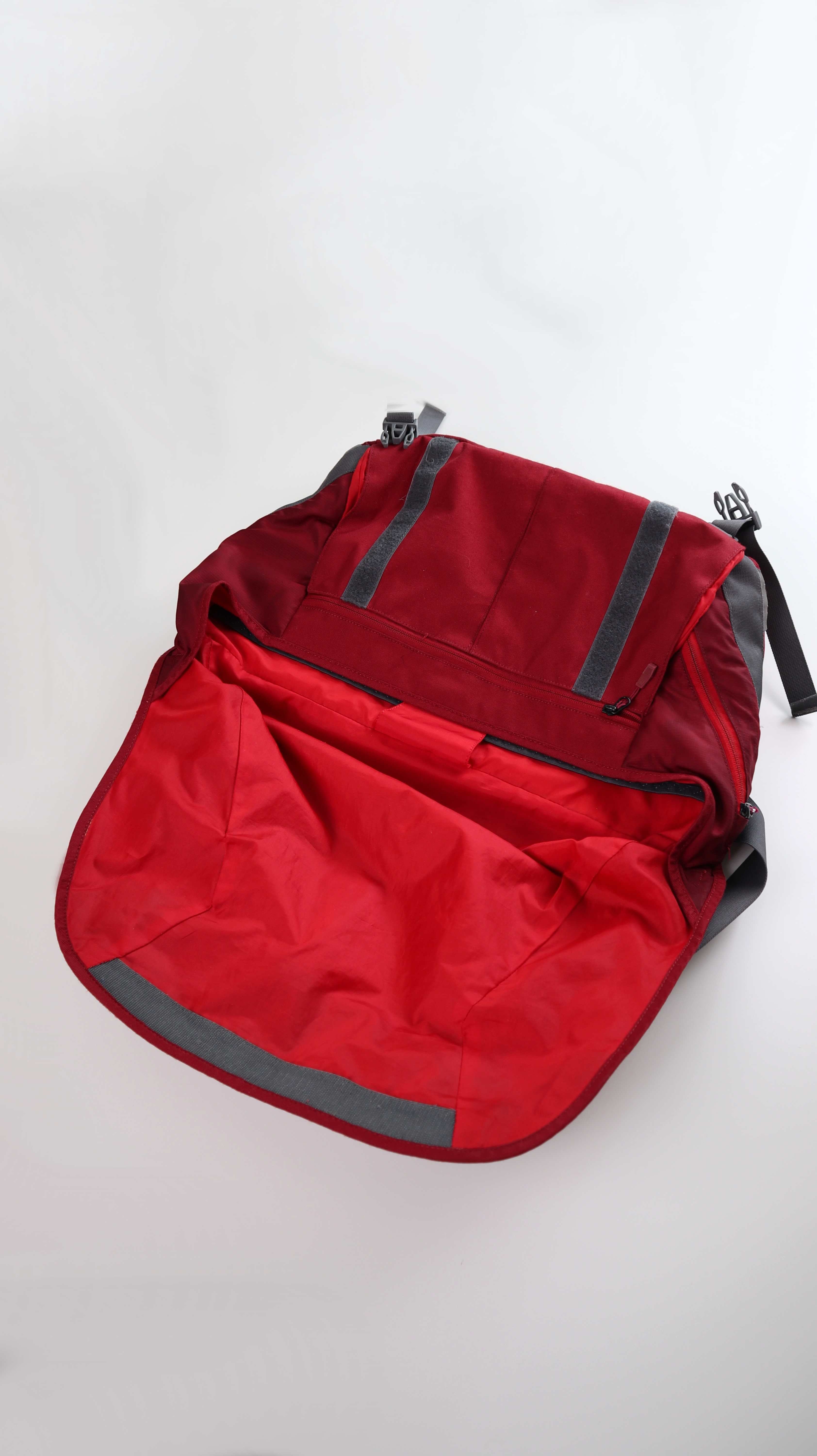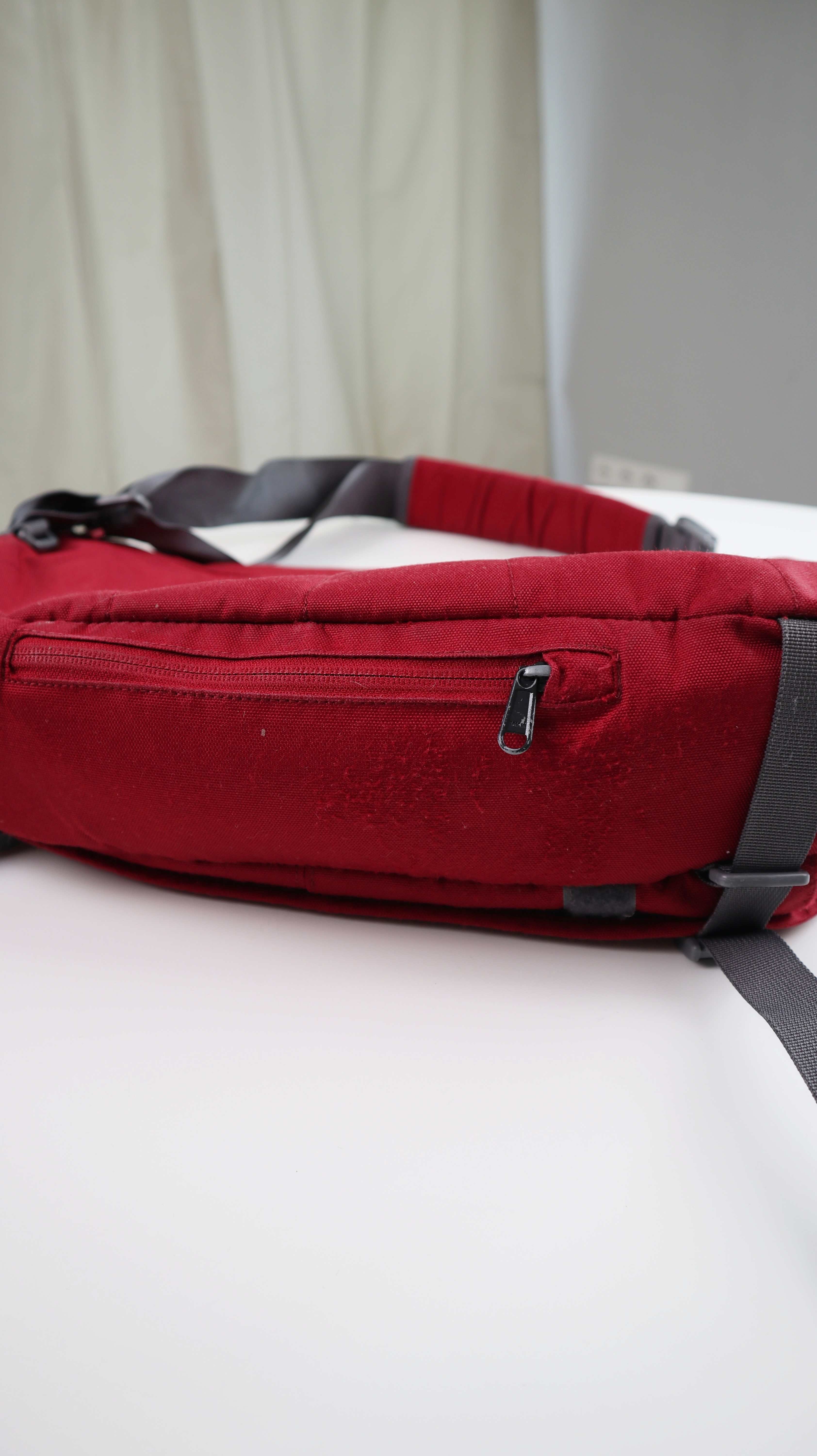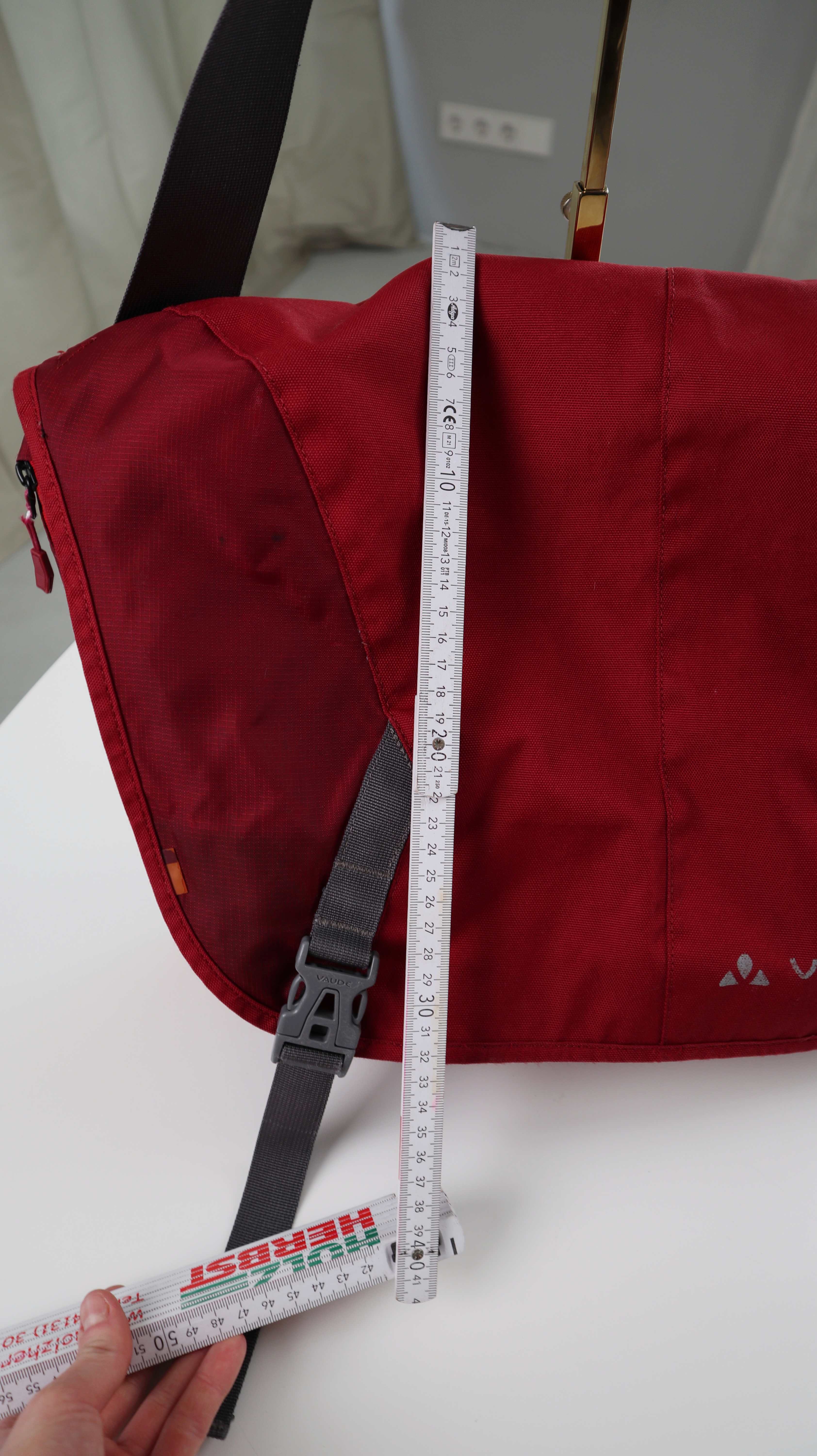 Rote Umhängetasche von Vaude mit vielen Fächern. Gereinigt, unten ist in einem Fach auch ein Regencape dabei. Benutzungsspuren an der Unterseite. Plus Versand