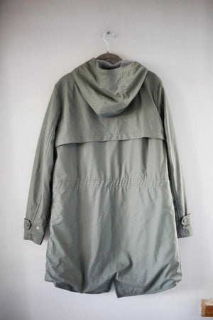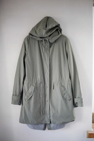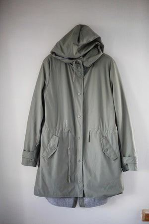 Grüne Regenjacke in einer 38 M von Vila. Sehr guter Zustand, keine Abnutzungsspuren vorhanden. Sie fällt größengerecht aus. 53 cm Achselweite und 87 cm Länge. Plus Versand