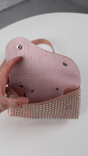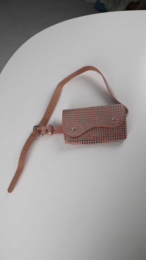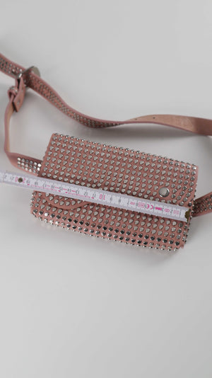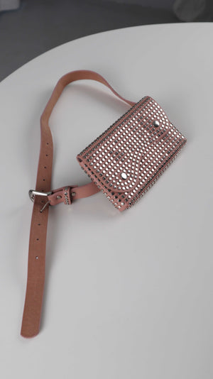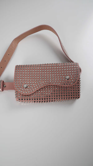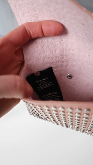 Kleine rosa Bauchtasche von Vimoda in rosa mit Metallnieten. Ideal für ein Handy. Plus Versand