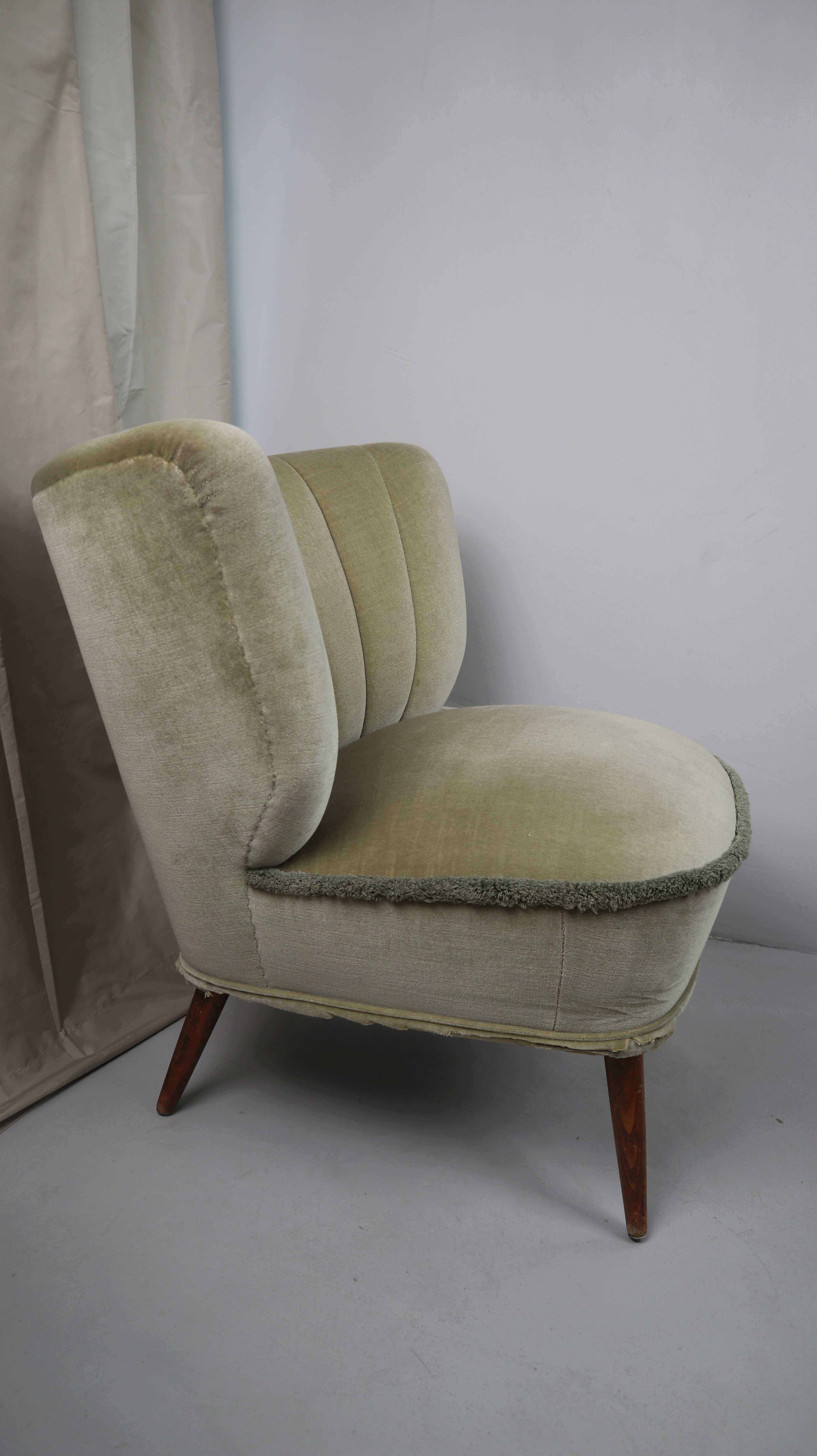 Vintage Cocktailsessel Grün Stuhl Sessel Samt Samtsessel Clubsessel