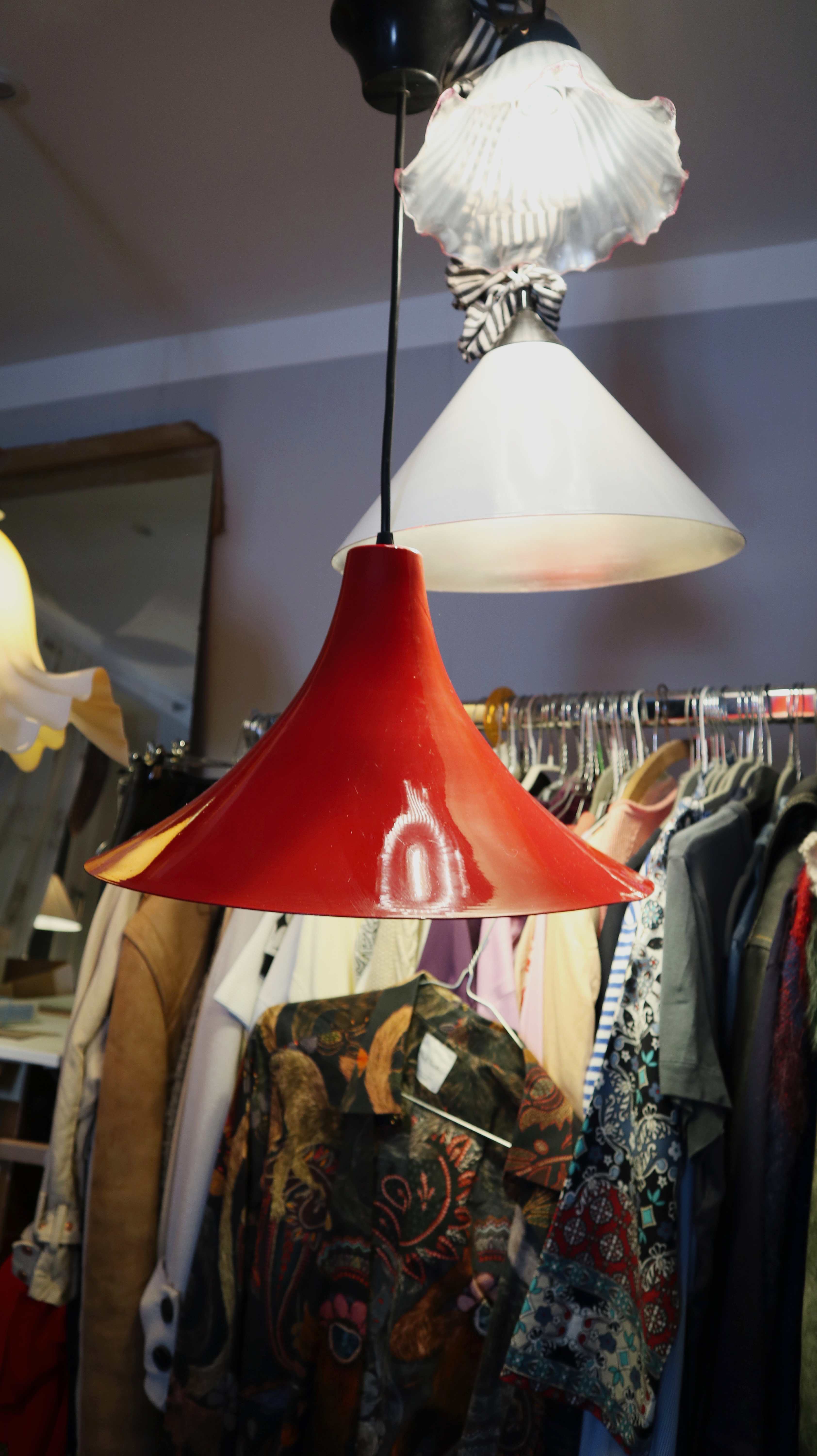 Vintage Deckenlampe rot Metalllampe Hexenhit danish design Pendelleuchte
