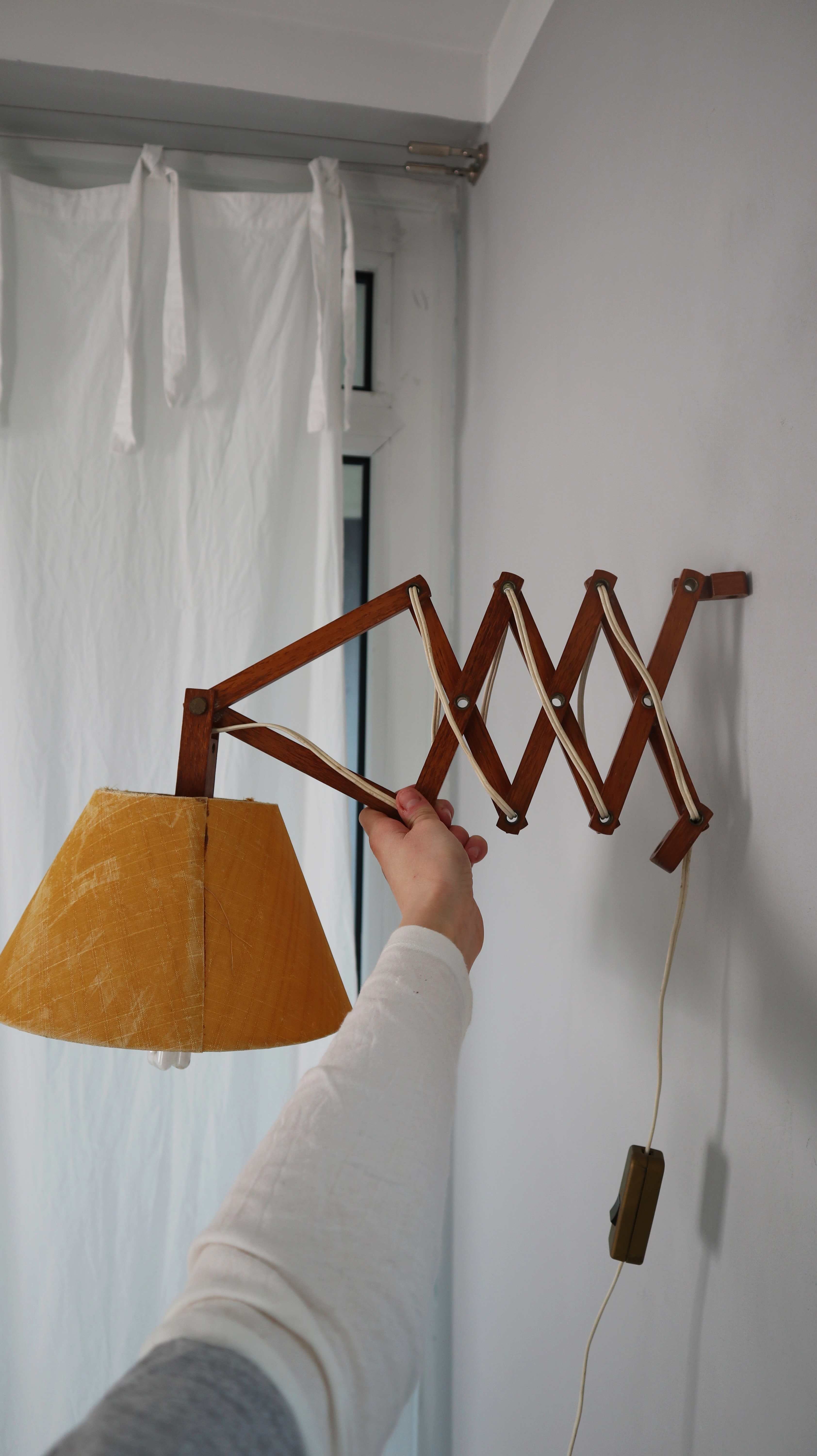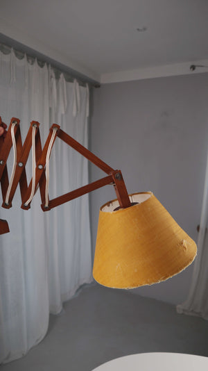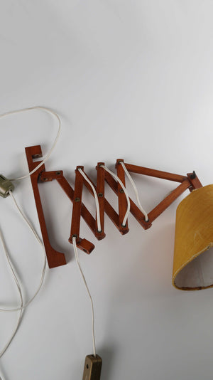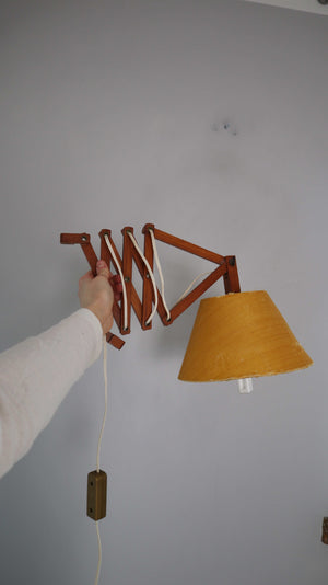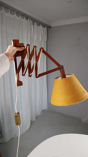 Vintage Scherenlampe Wandlampe Skandinavisch Holz Gelb Dänemark Teakholz
