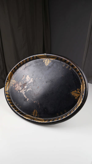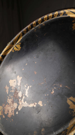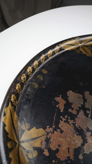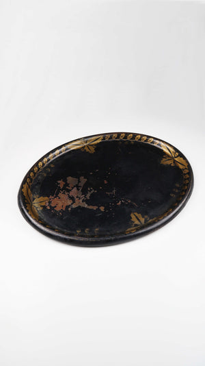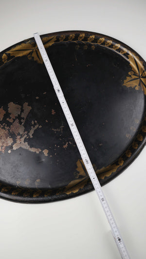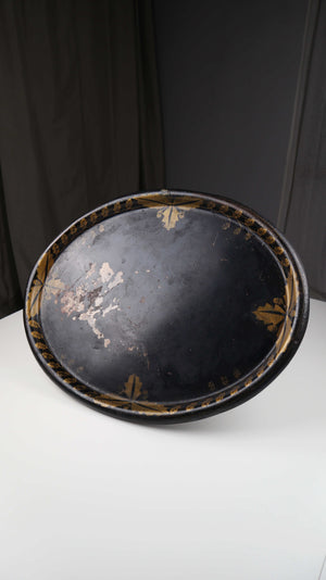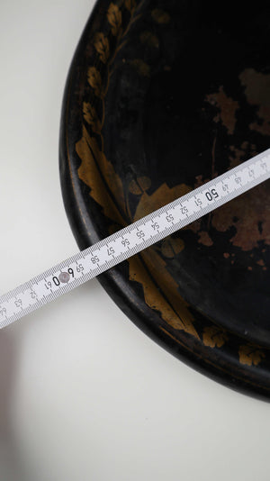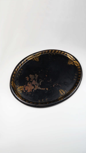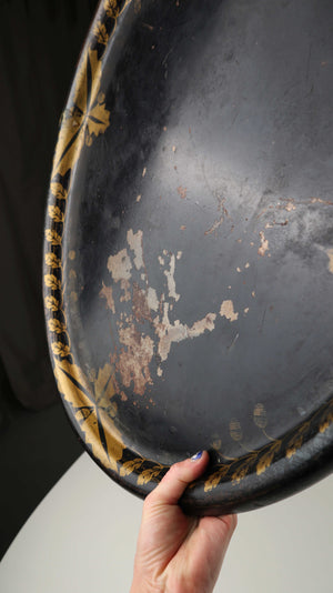 Vintage Tablett schwarz Gold Oval groß Eicheln Viktorianisch Intarsien
