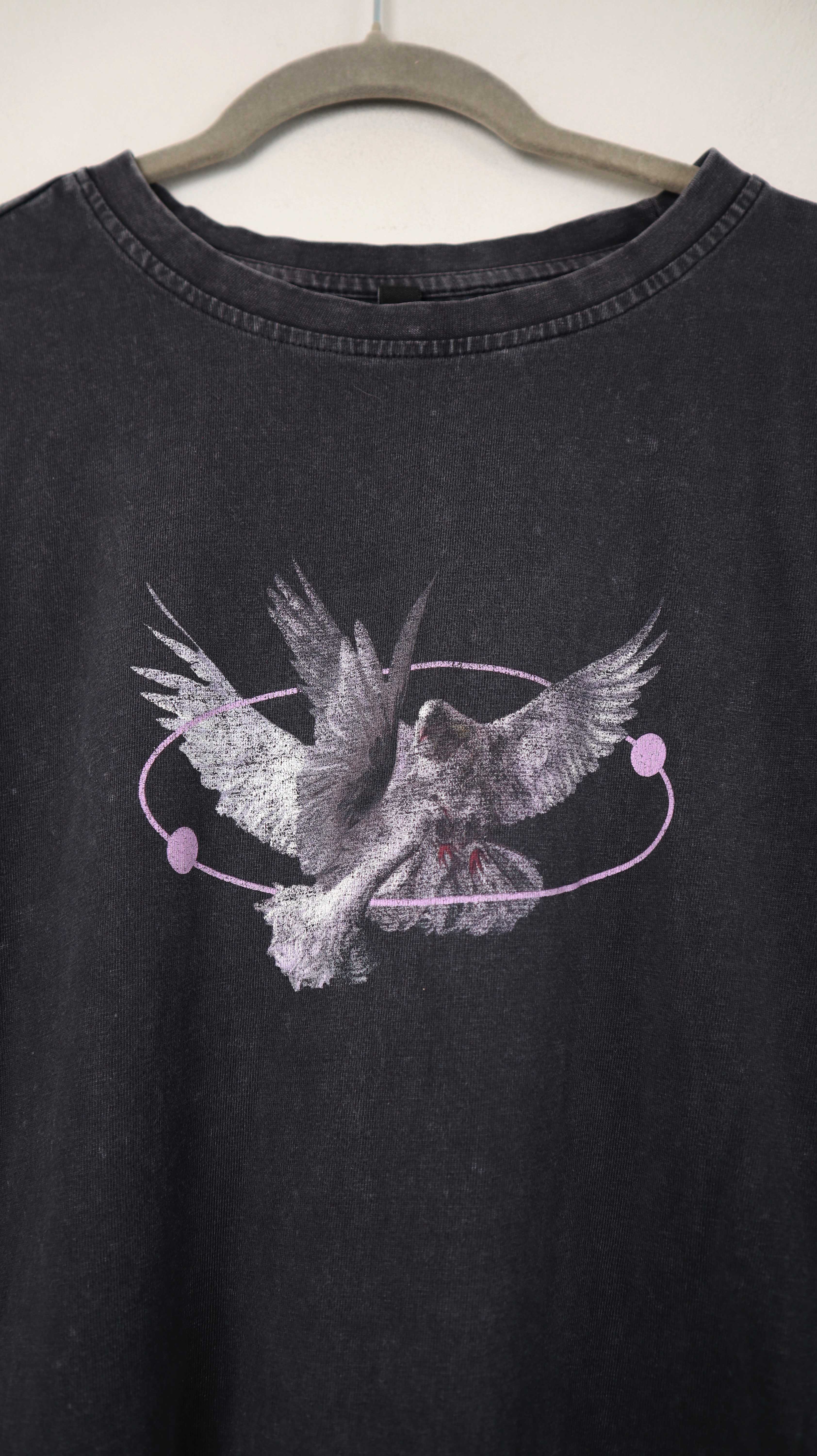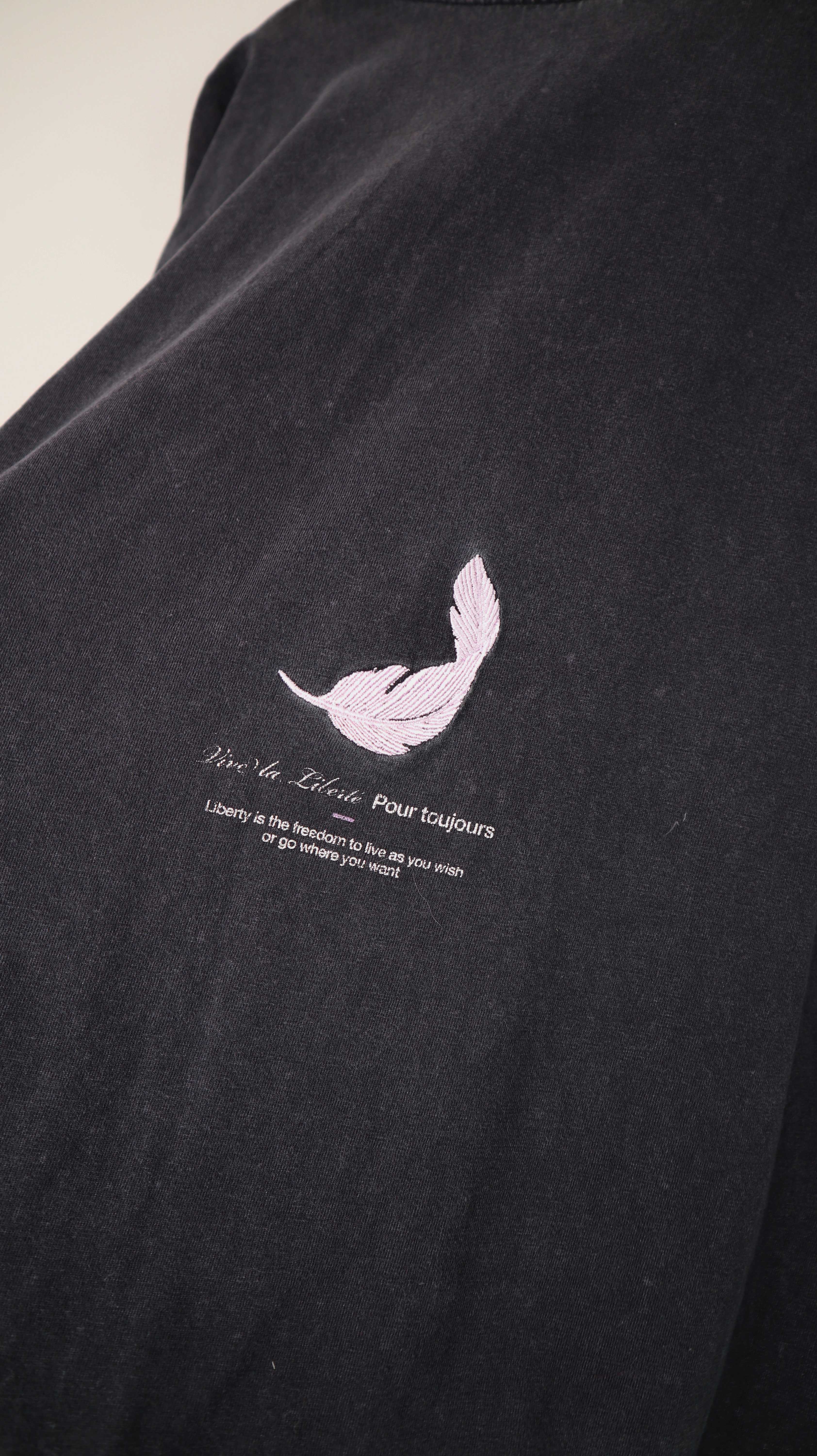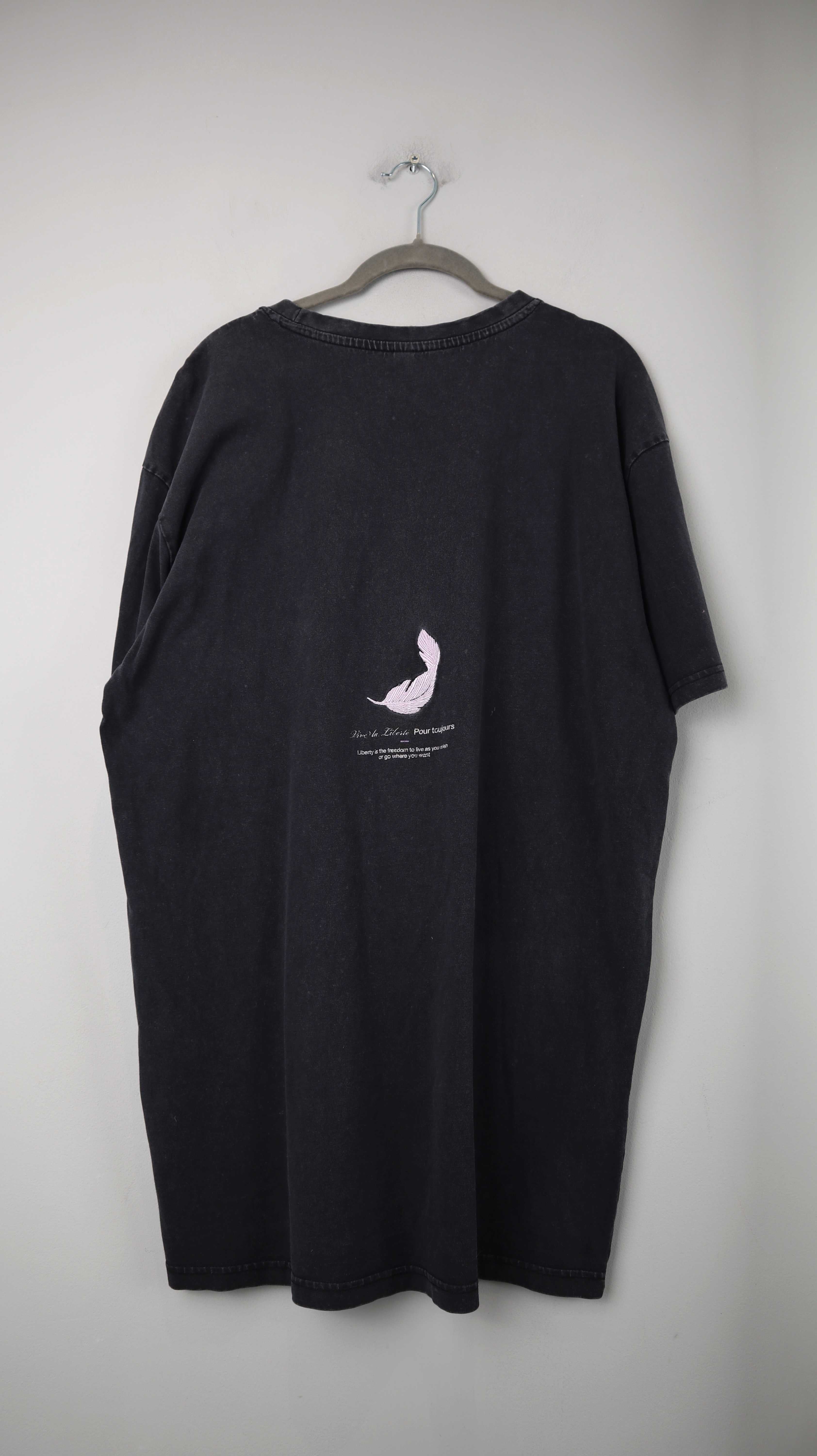 Vive la liberte T-Shirt print black acid washed L Dunkelgrau Grau