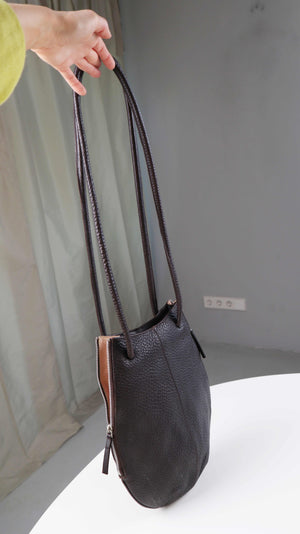VOI Tasche Ledertasche braun Schultertasche Beuteltasche rundlich