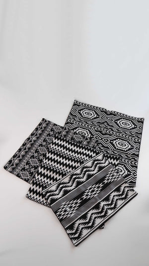 Vossberg Kissen Kissenhüllen schwarz weiß gemustert Aztekenmuster