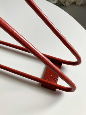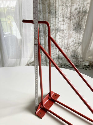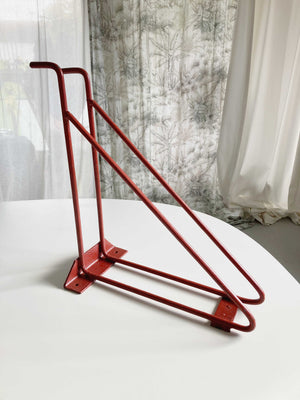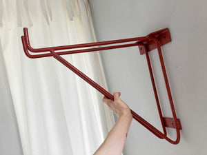 Roter Metallhalter für die Wand. Stützlast nicht bekannt, montiert eine gute Befestigung für ein Fahrrad oder Rennrad. Plus Versand oder Abholung