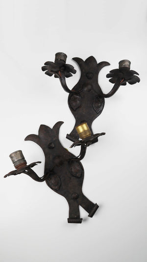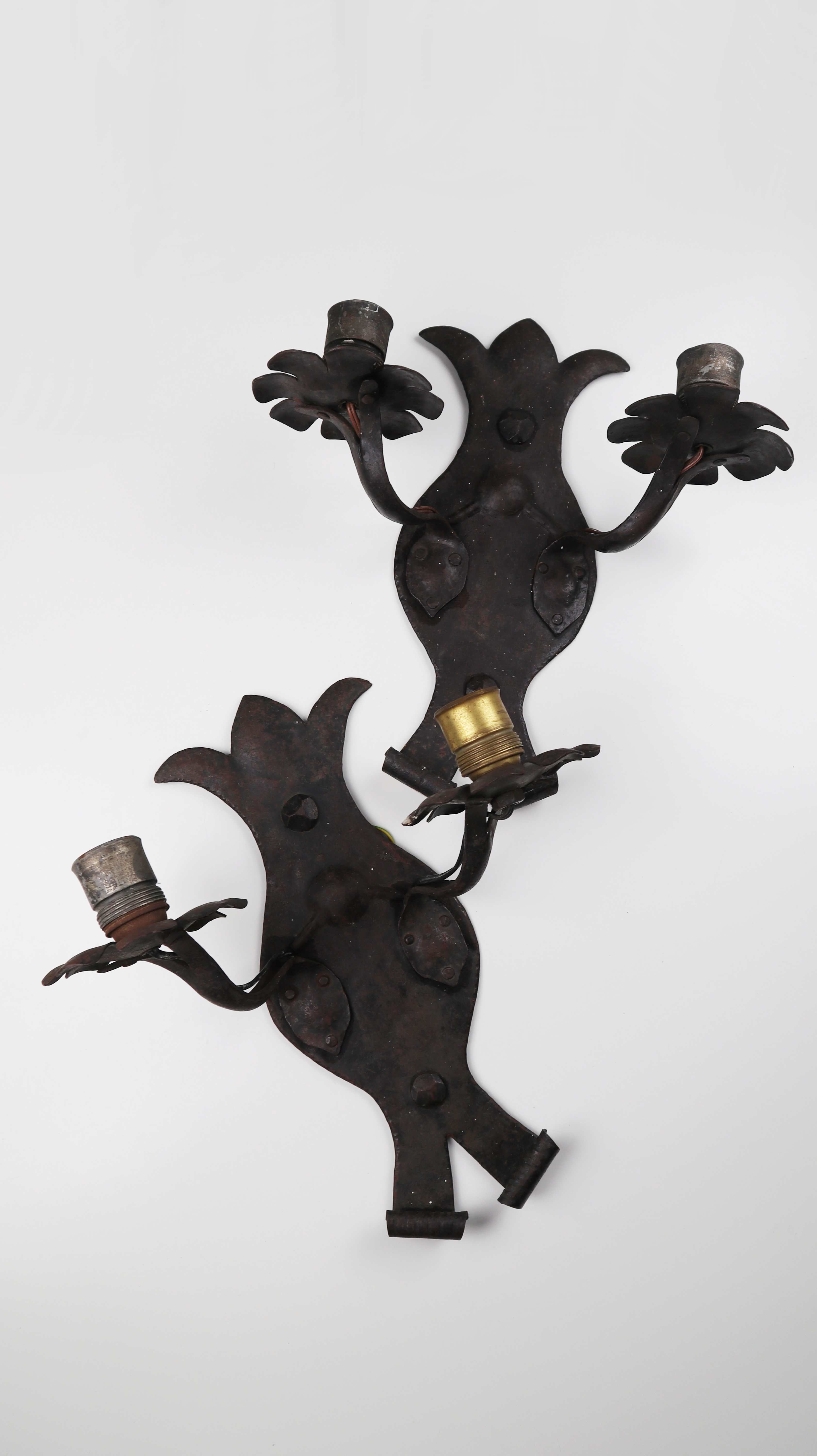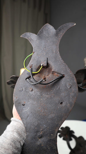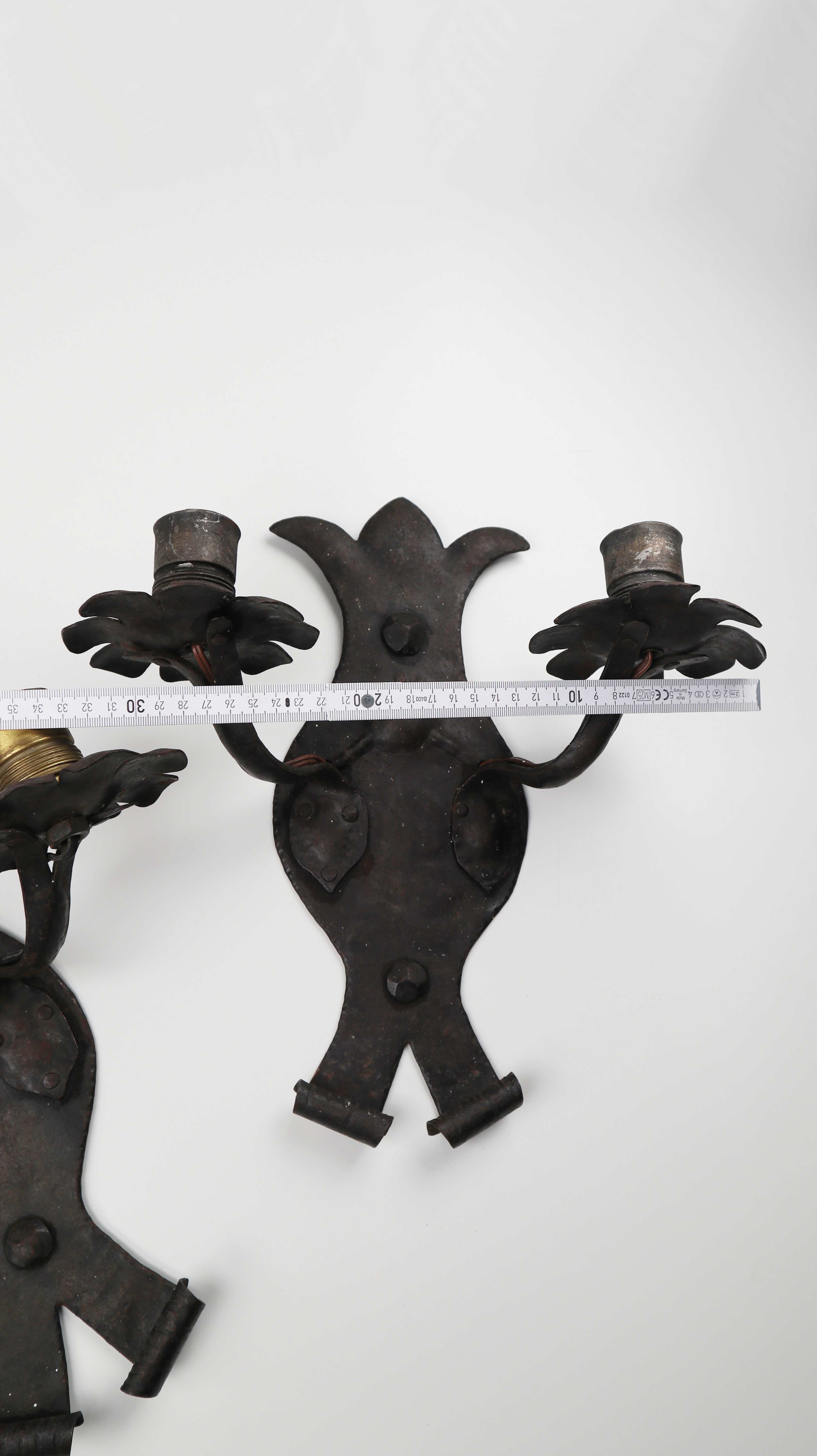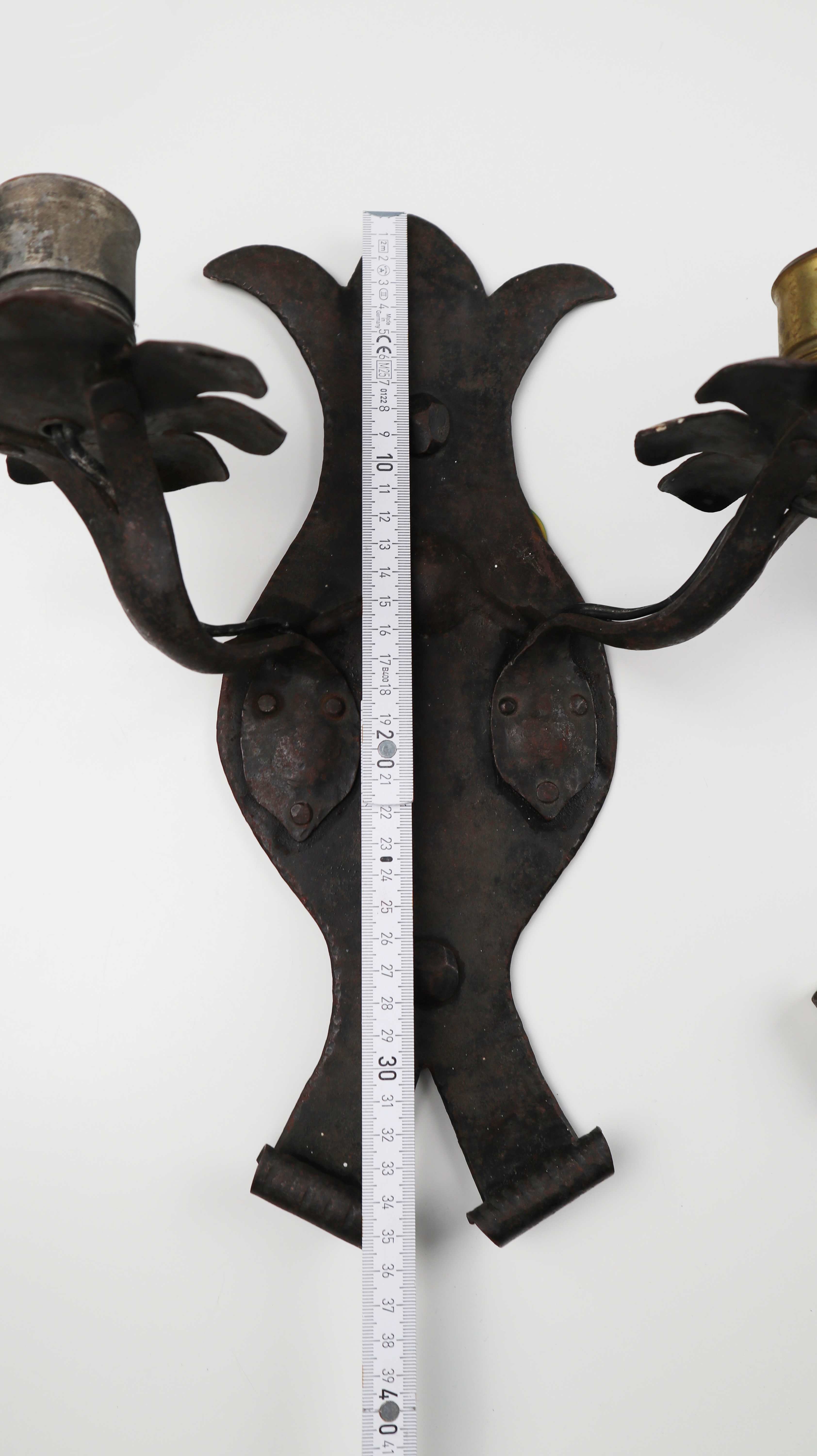Set von zwei Wandleuchten, ideal für einen Außenbereich, überdacht. Sie haben auf der Rückseite einen normalen Stromanschluss. Das Material ist Metall, ich denke Gusseisen. Plus Versand