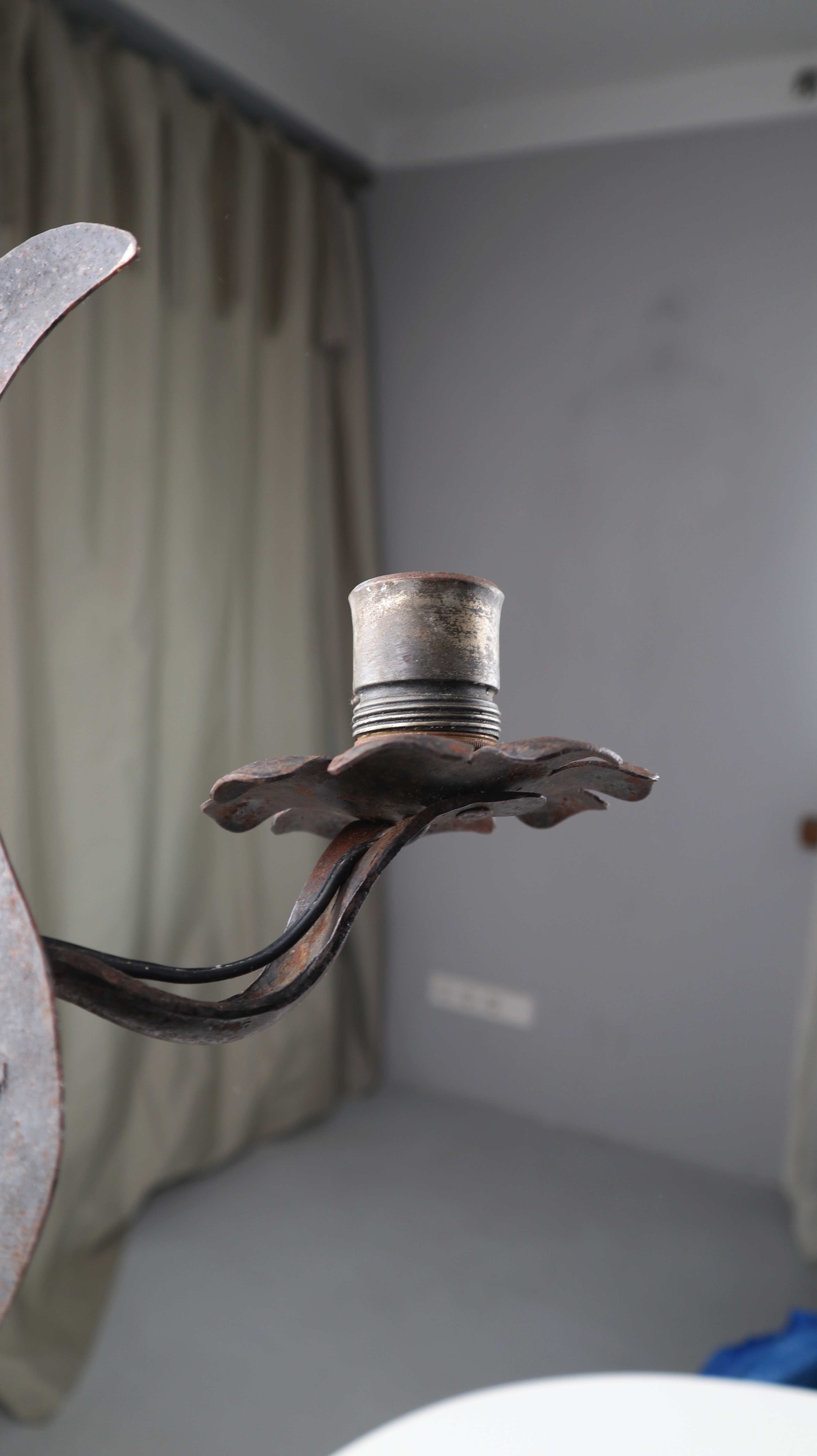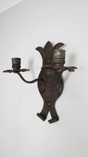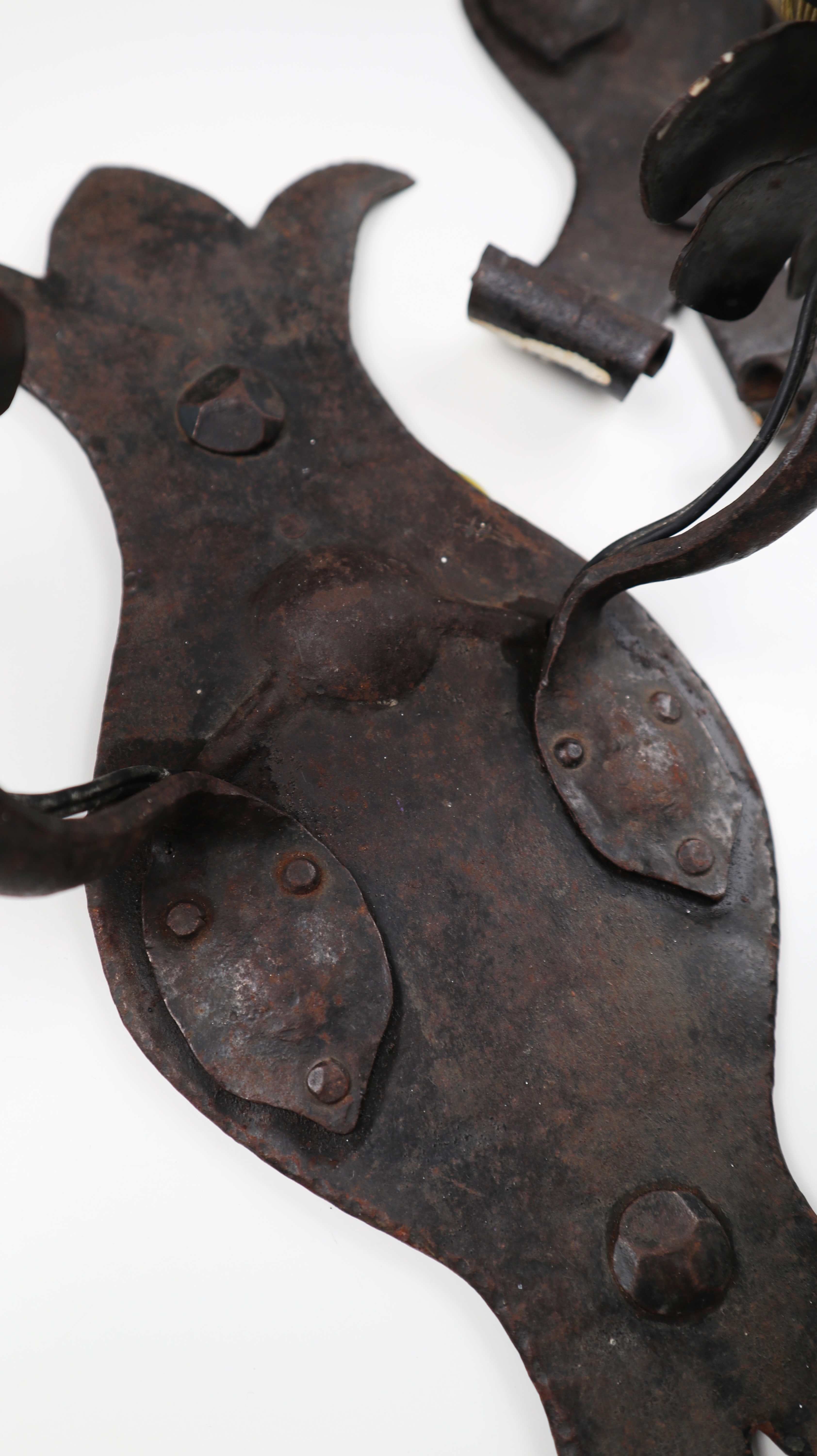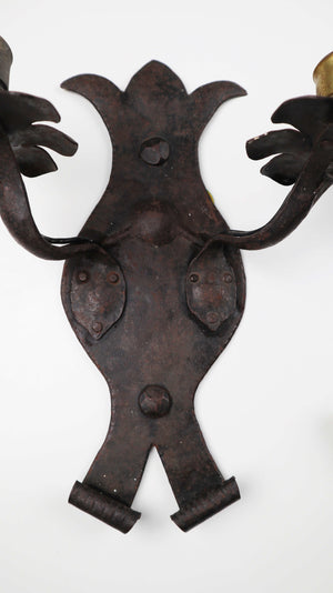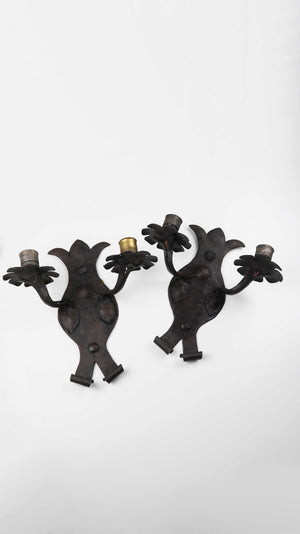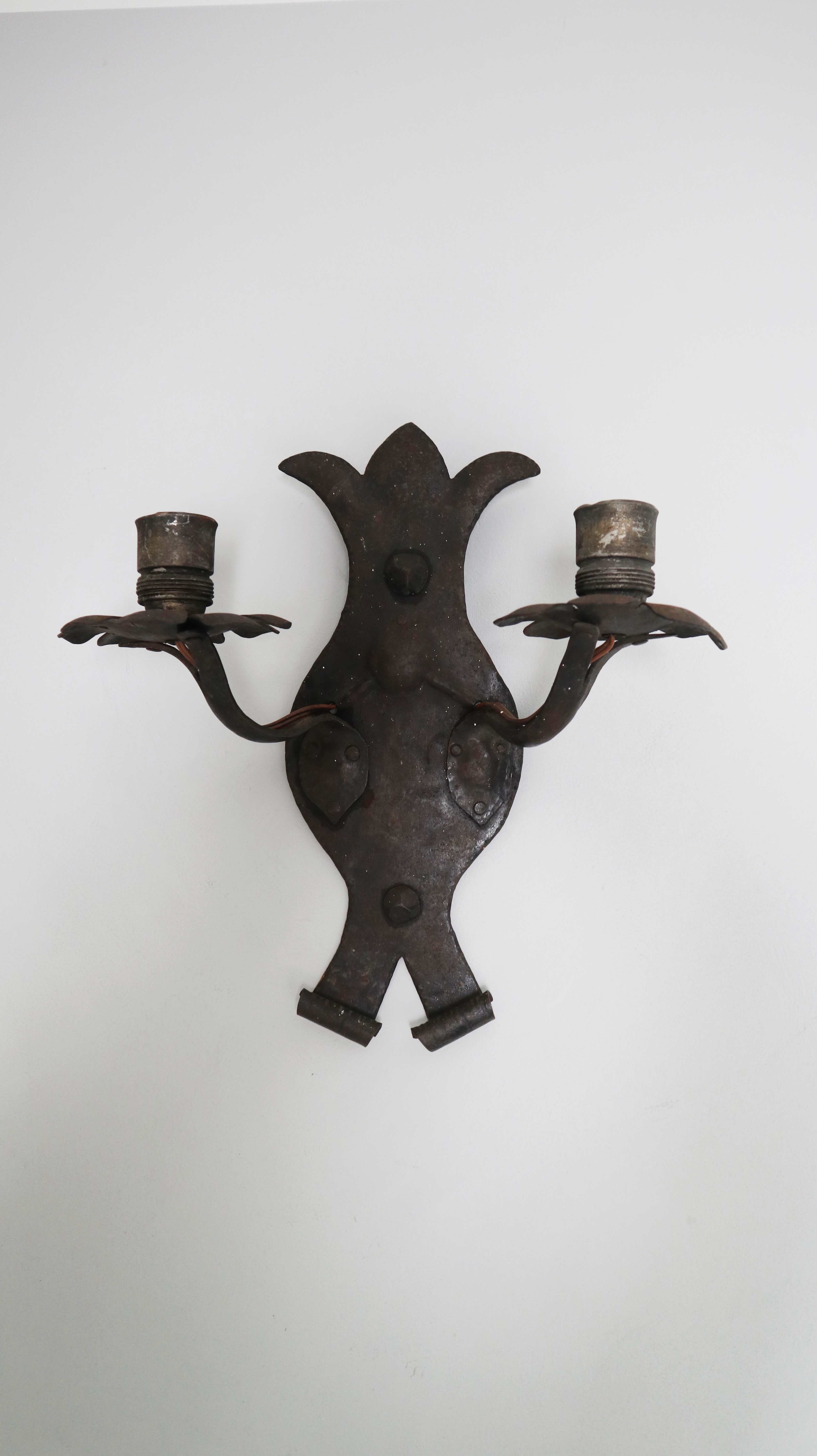 Set von zwei Wandleuchten, ideal für einen Außenbereich, überdacht. Sie haben auf der Rückseite einen normalen Stromanschluss. Das Material ist Metall, ich denke Gusseisen. Plus Versand