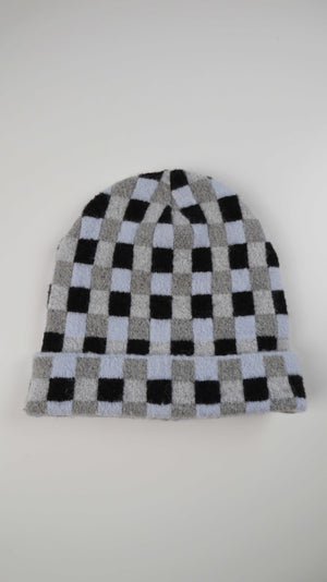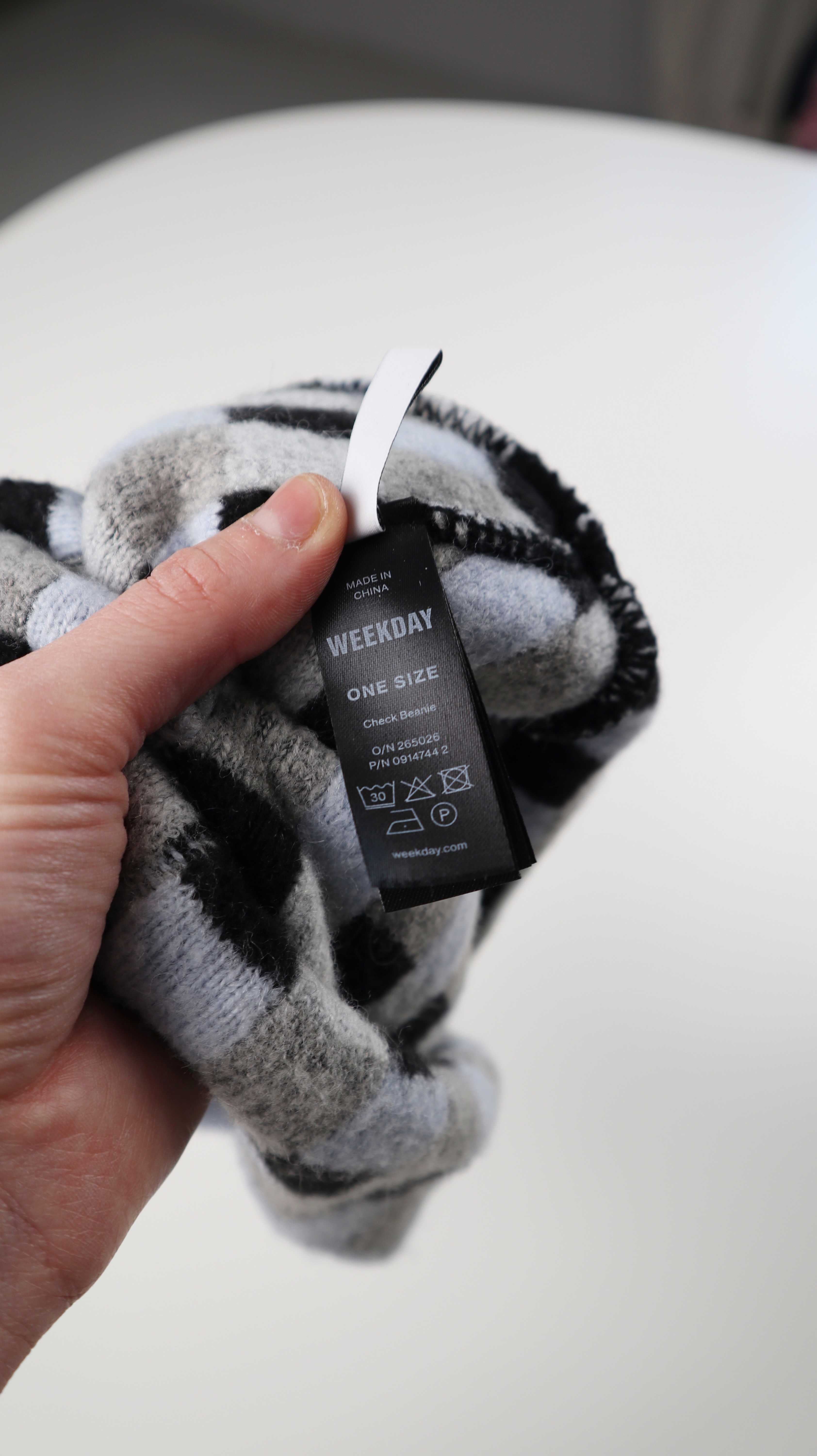 Weekday Mütze Beanie unisex kariert blau grau schwarz