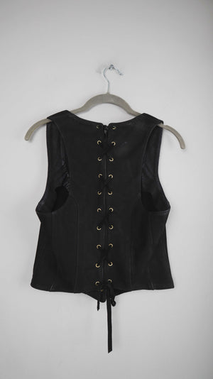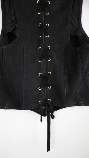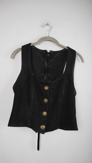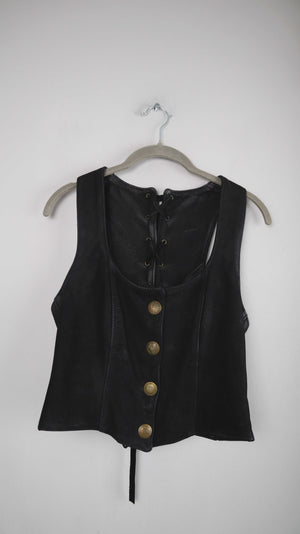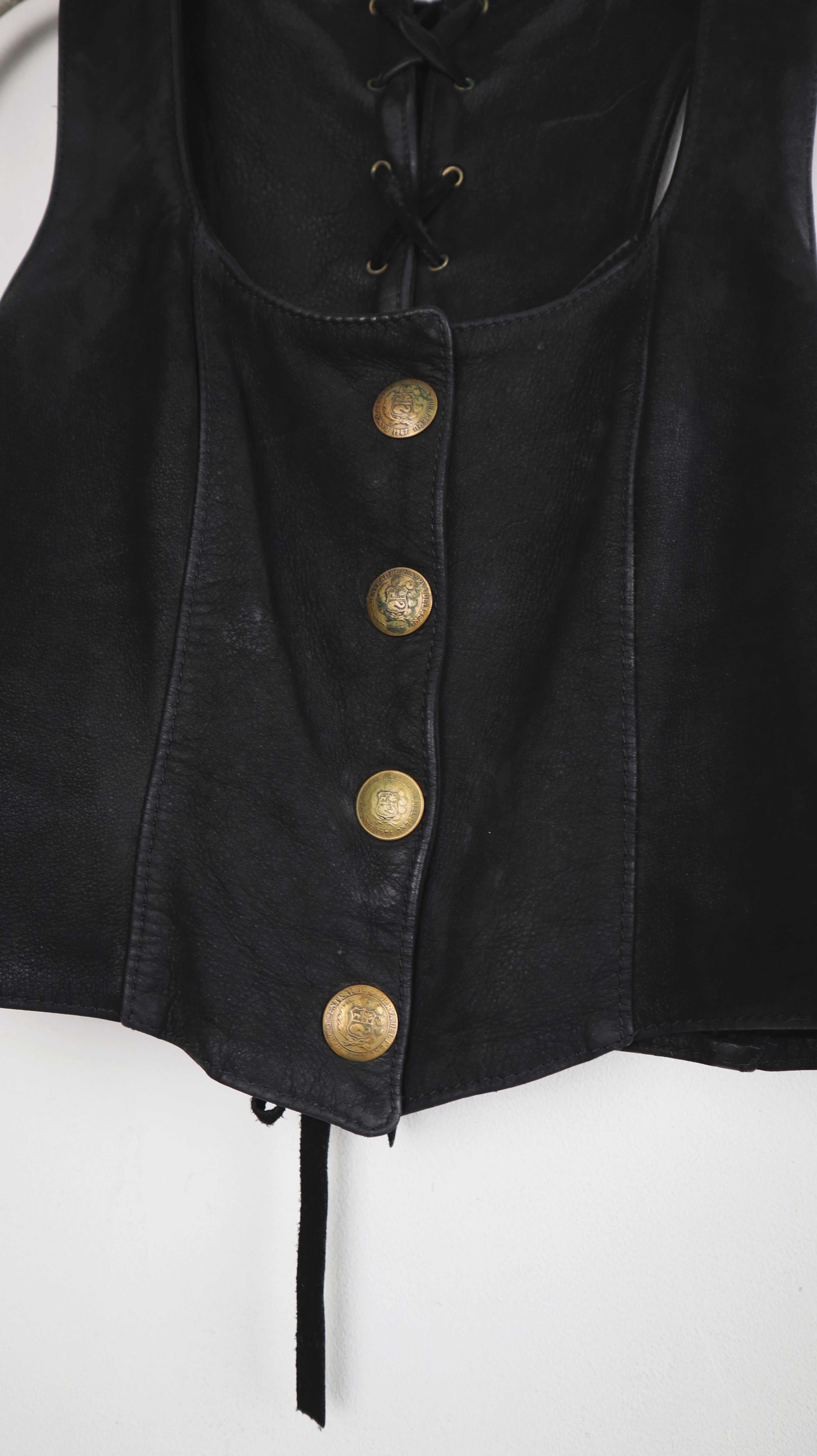 Weste Leder Lederweste Pyrate Style schwarz Gold Knöpfe geknöpft gebunden