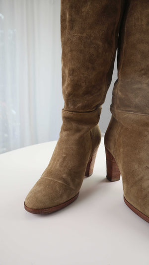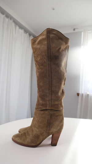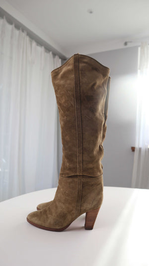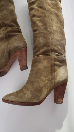 Wildlederstiefel Grün Khaki Olivgrün 39 hoch Leder Stiefeletten