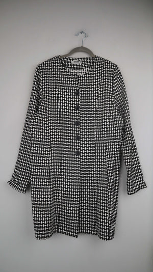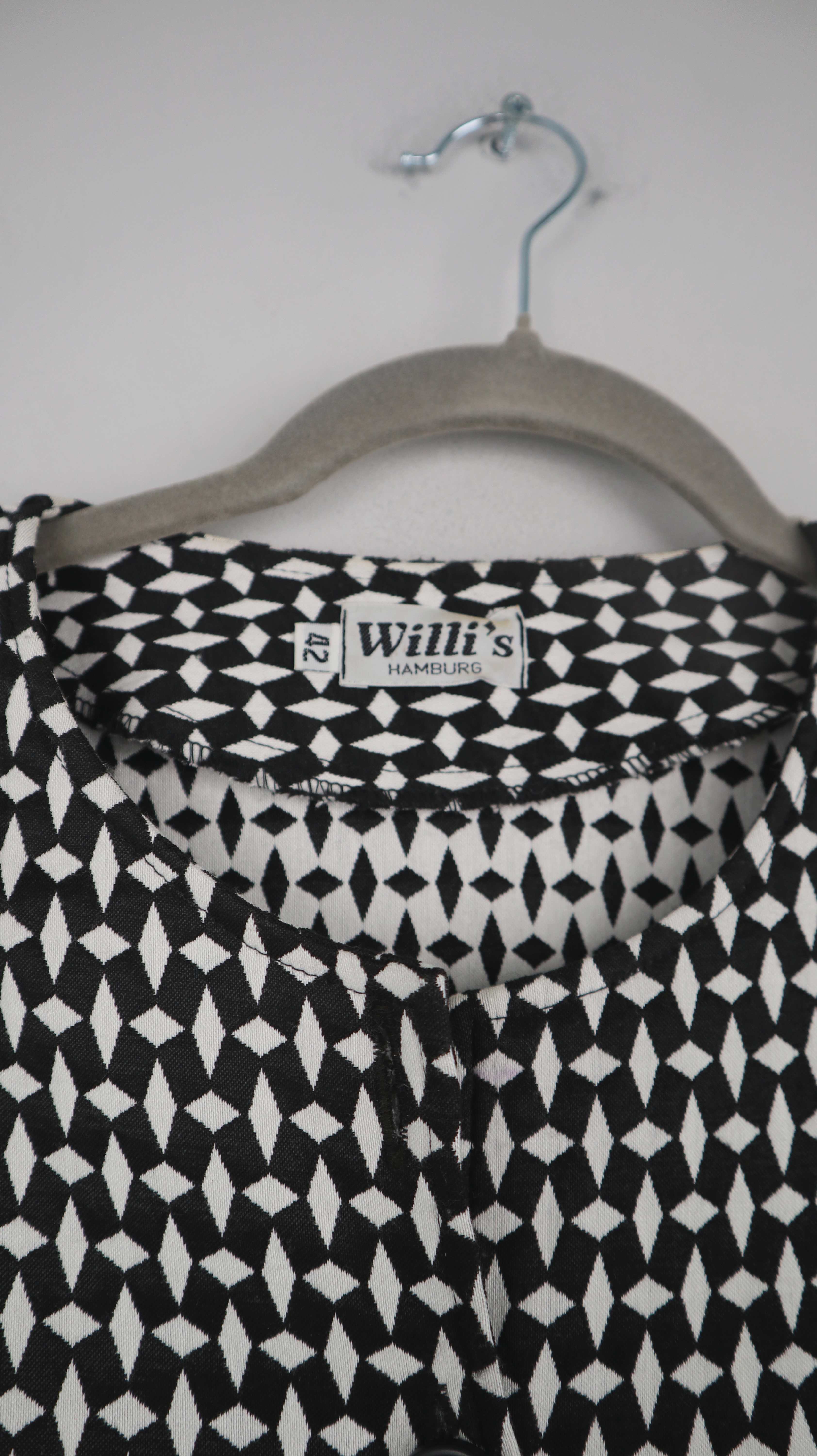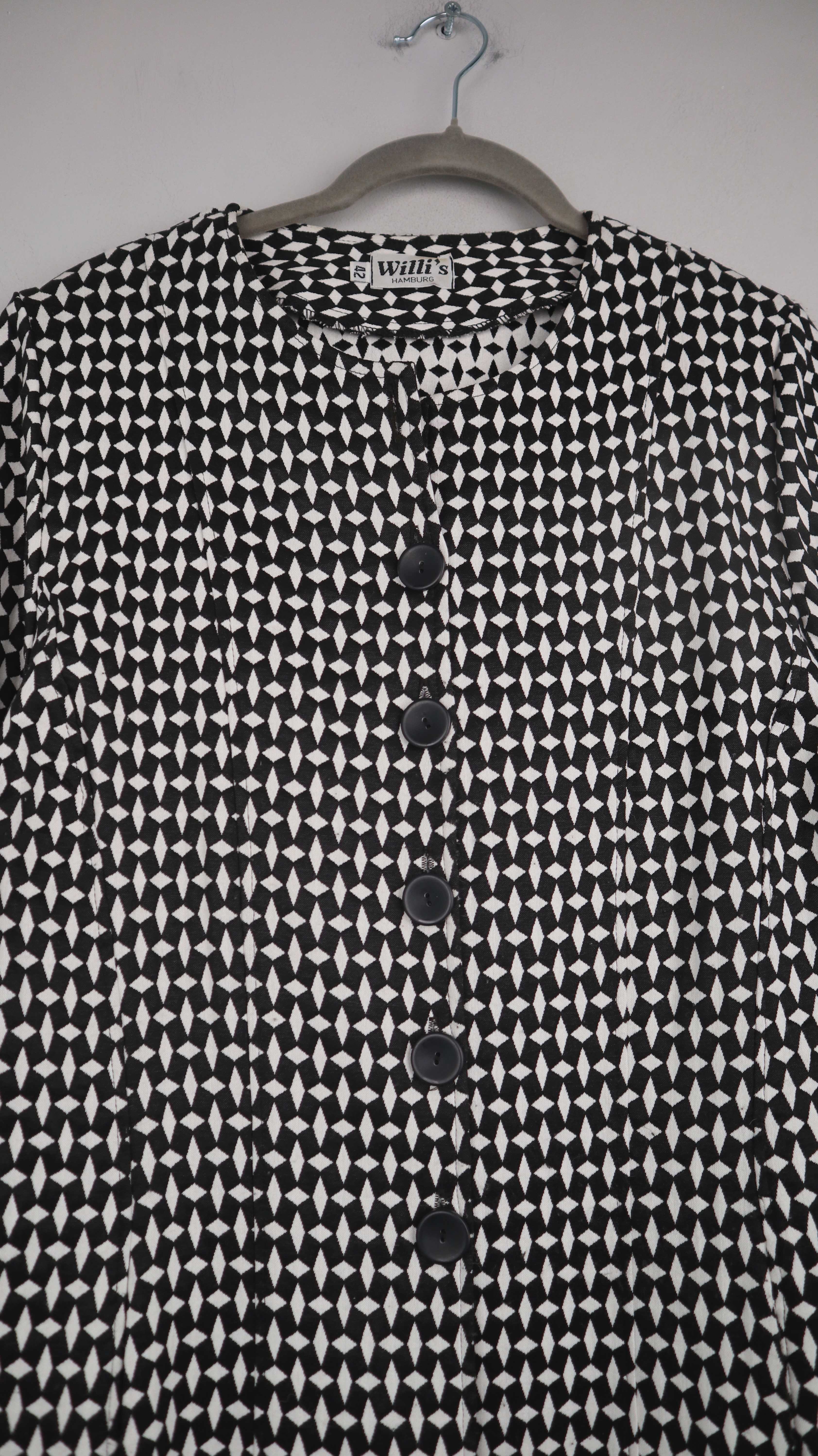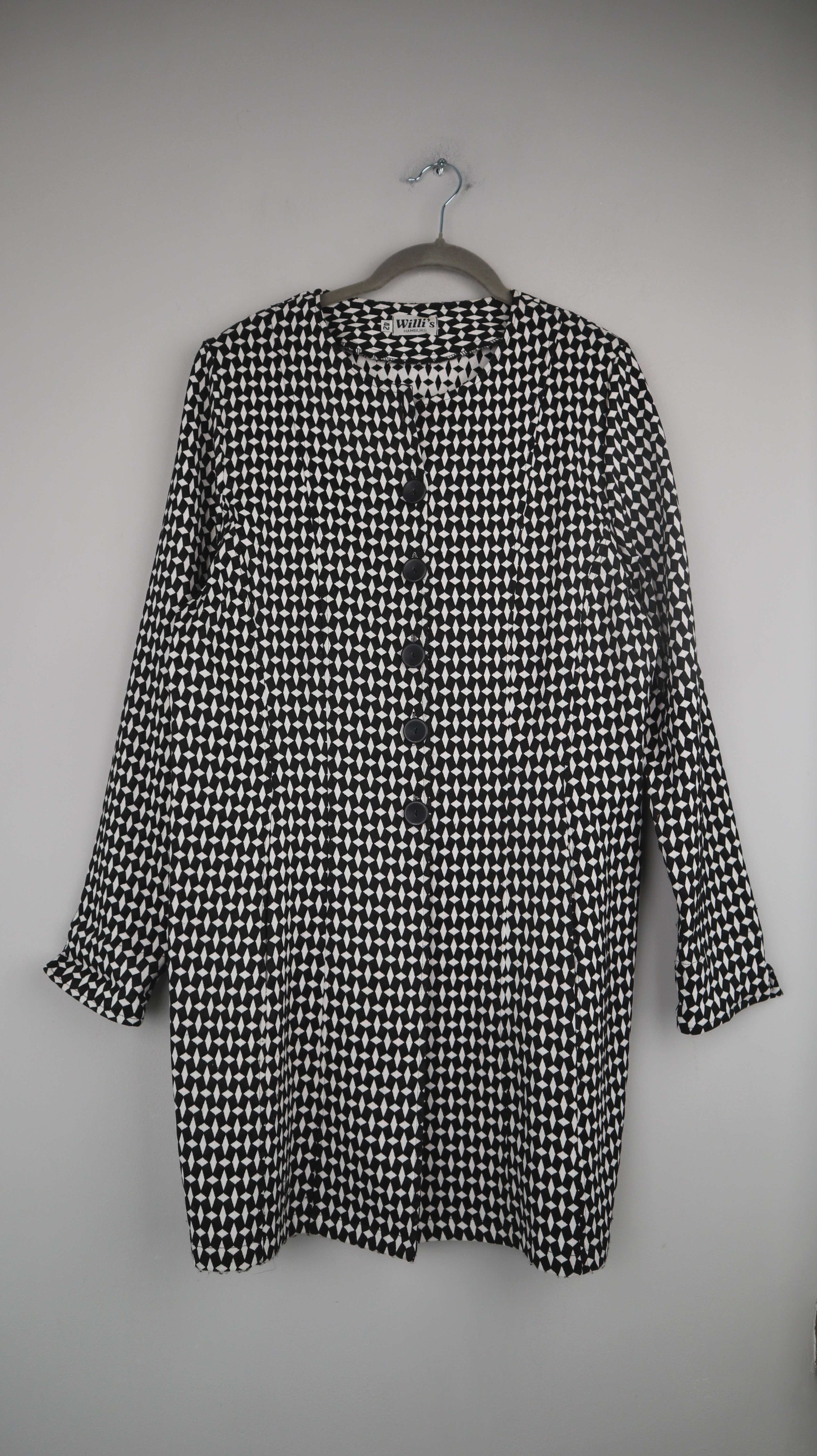 Willi's Hamburg Mantel schwarz weiß 42 XL lang Muster geometrisch