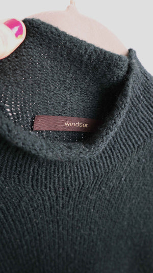 Dunkelgrüner Pullover aus Schurwolle in einer 40 L von Windsor. 58 cm Achselweite und 66 cm Länge. Plus Versand