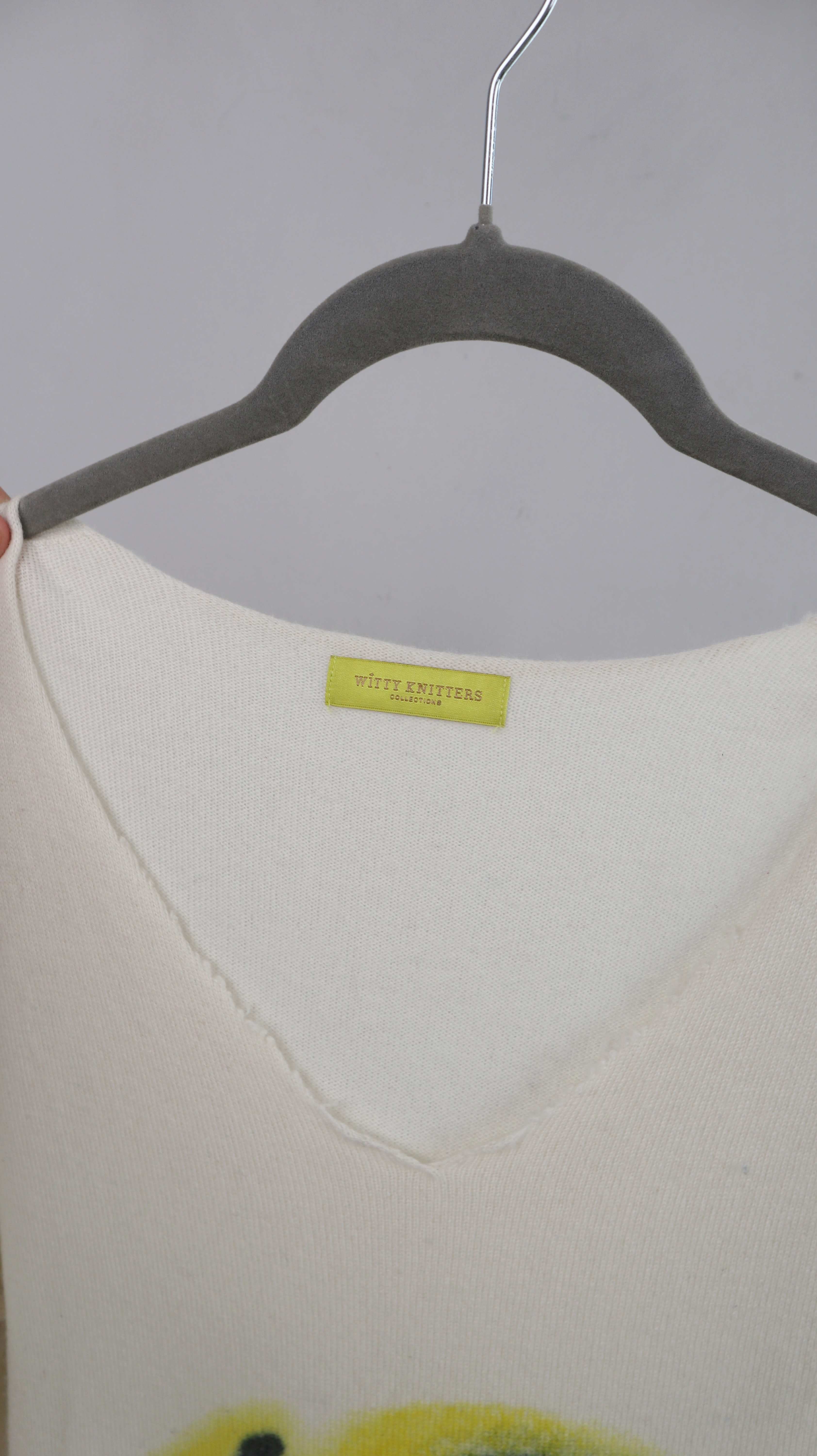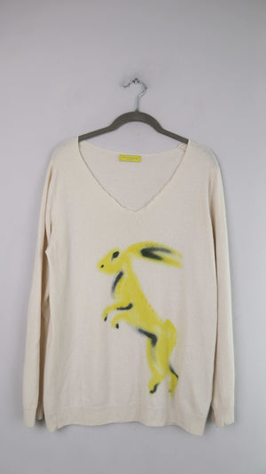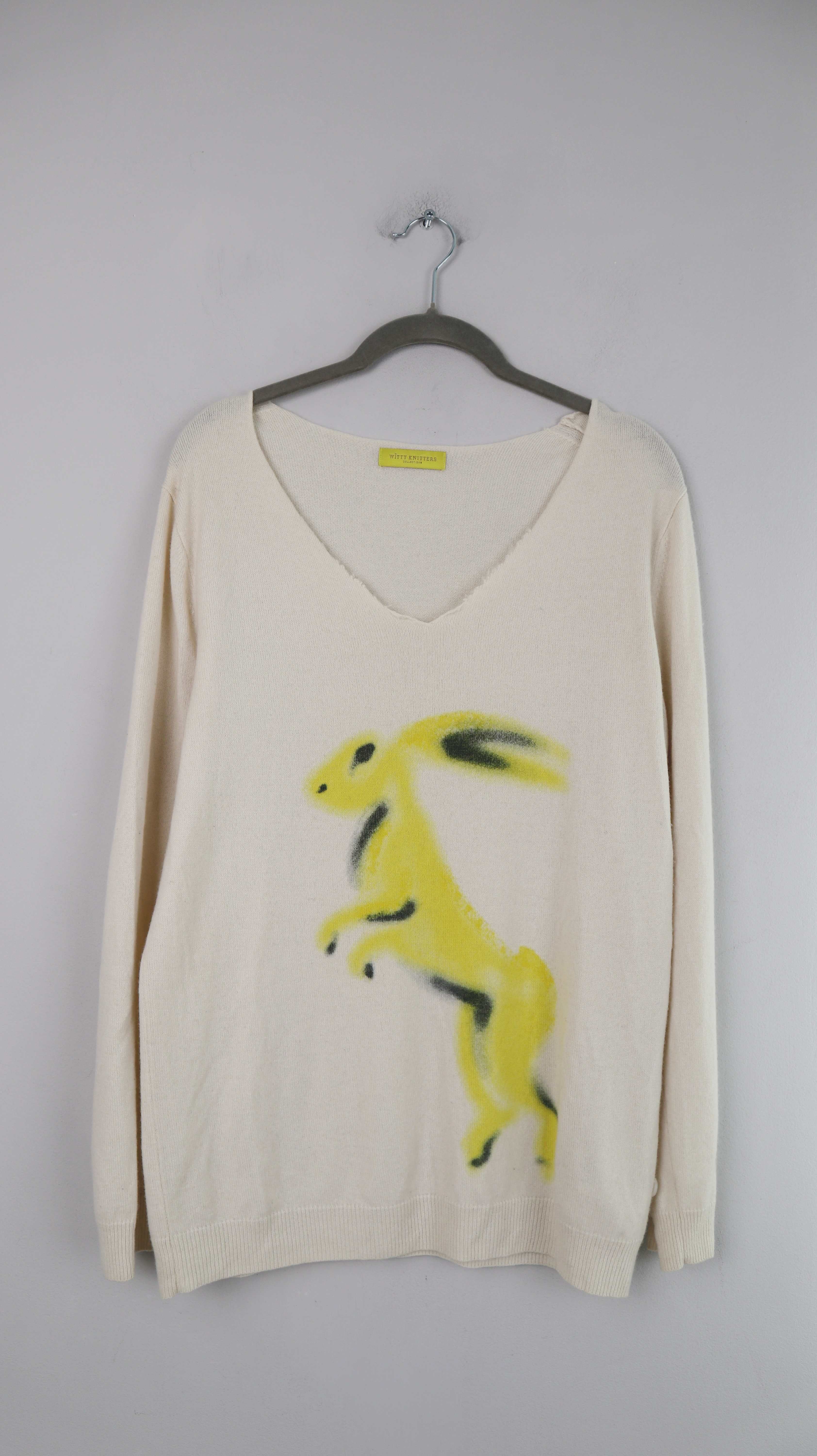 Witty Knitters Pullover Creme Beige Hase bedruckt M L Cashmere