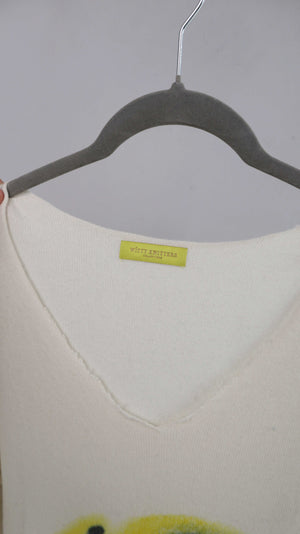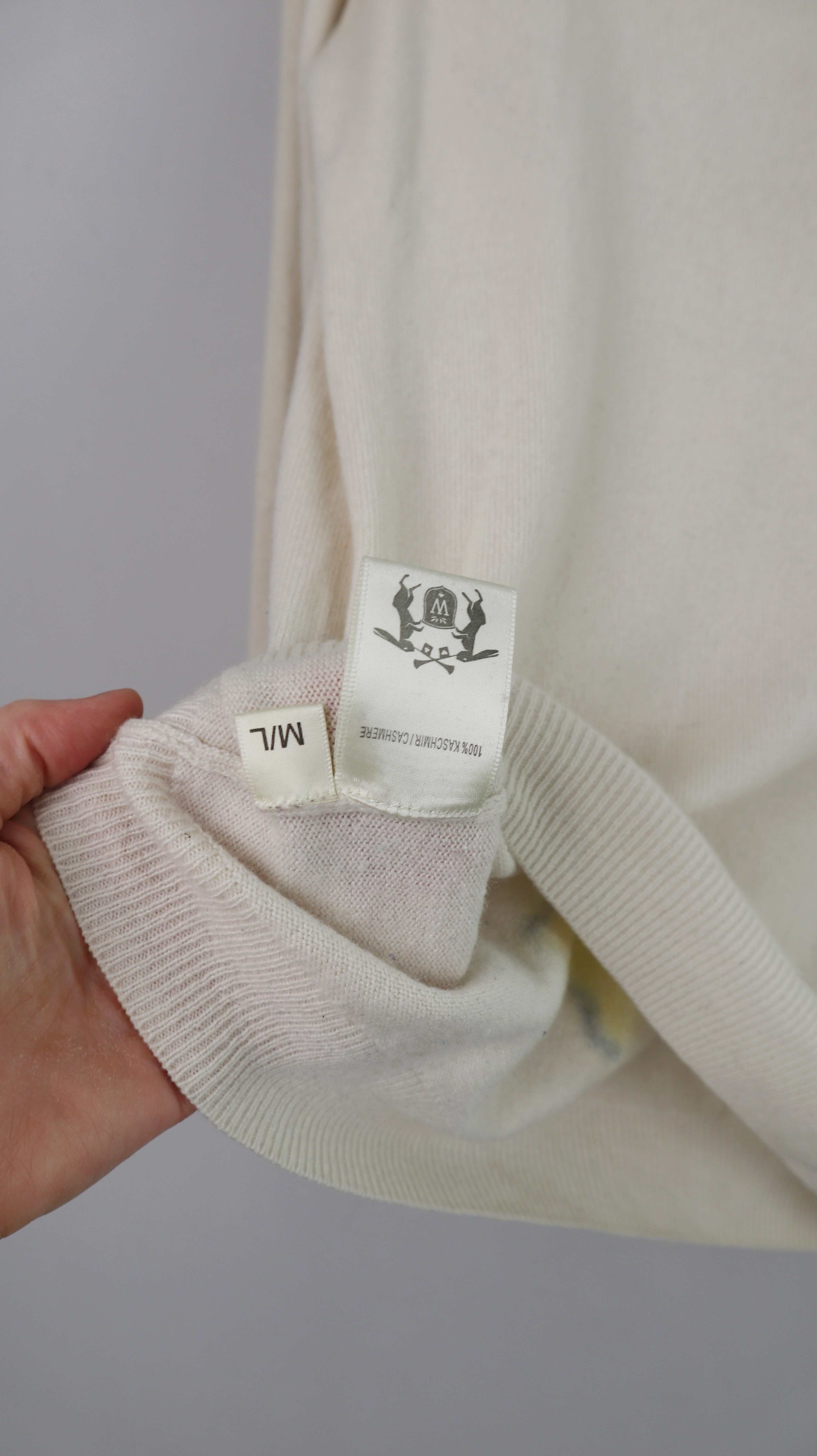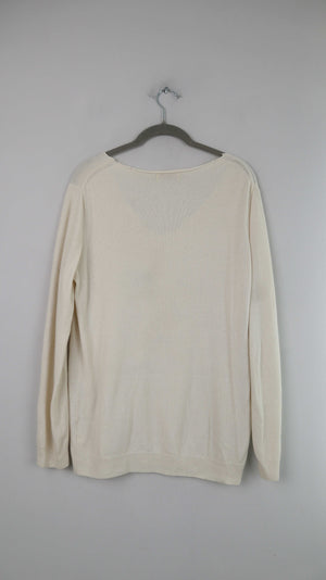 Cashmerepullover in Creme in Größe M/L. Er hat auf der Brust einen Hasen. Plus Versand