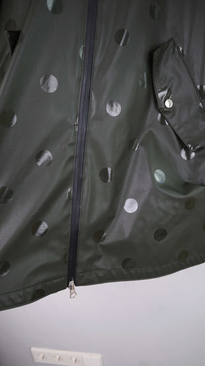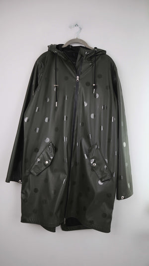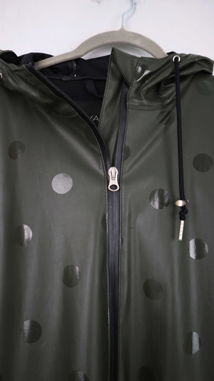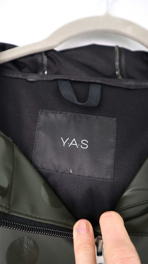YAS Regenjacke Regenmantel 40 L Dunkelgrün Grün Olivgrün gepunktet
