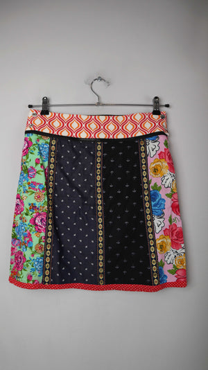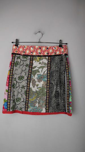 Bunter Rock von Zand Amsterdam in einer Universalgröße. Durch die Nieten ist er für jede Größe einstellbar und zusätzlich auch ein Wenderock und von beiden Seiten zu benutzen. 40 cm Bundweite (verstellbar) und 49 cm Länge. Plus Versand