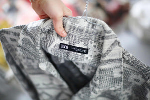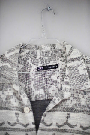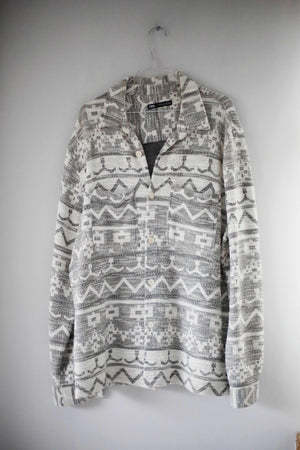Zara Hemd Grau Aztekenmuster basic XL weiß Shirt Oberteil Bohemian