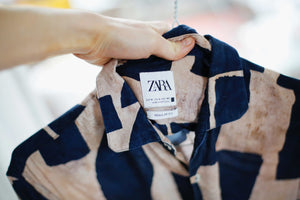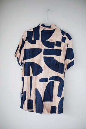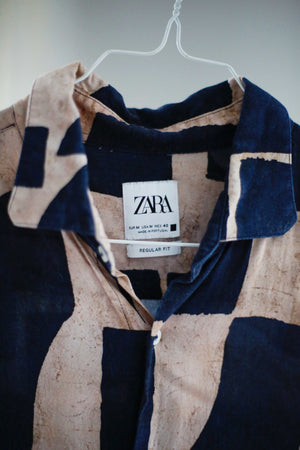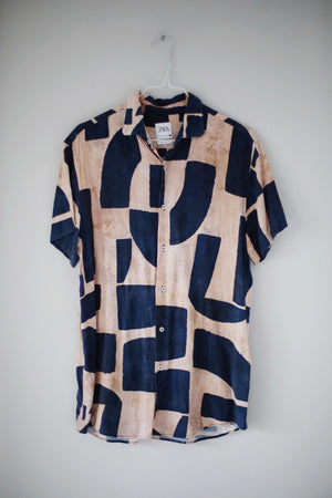 Zara Hemd print bunt gedruckt blau grafisch Muster M Shirt kurzarm