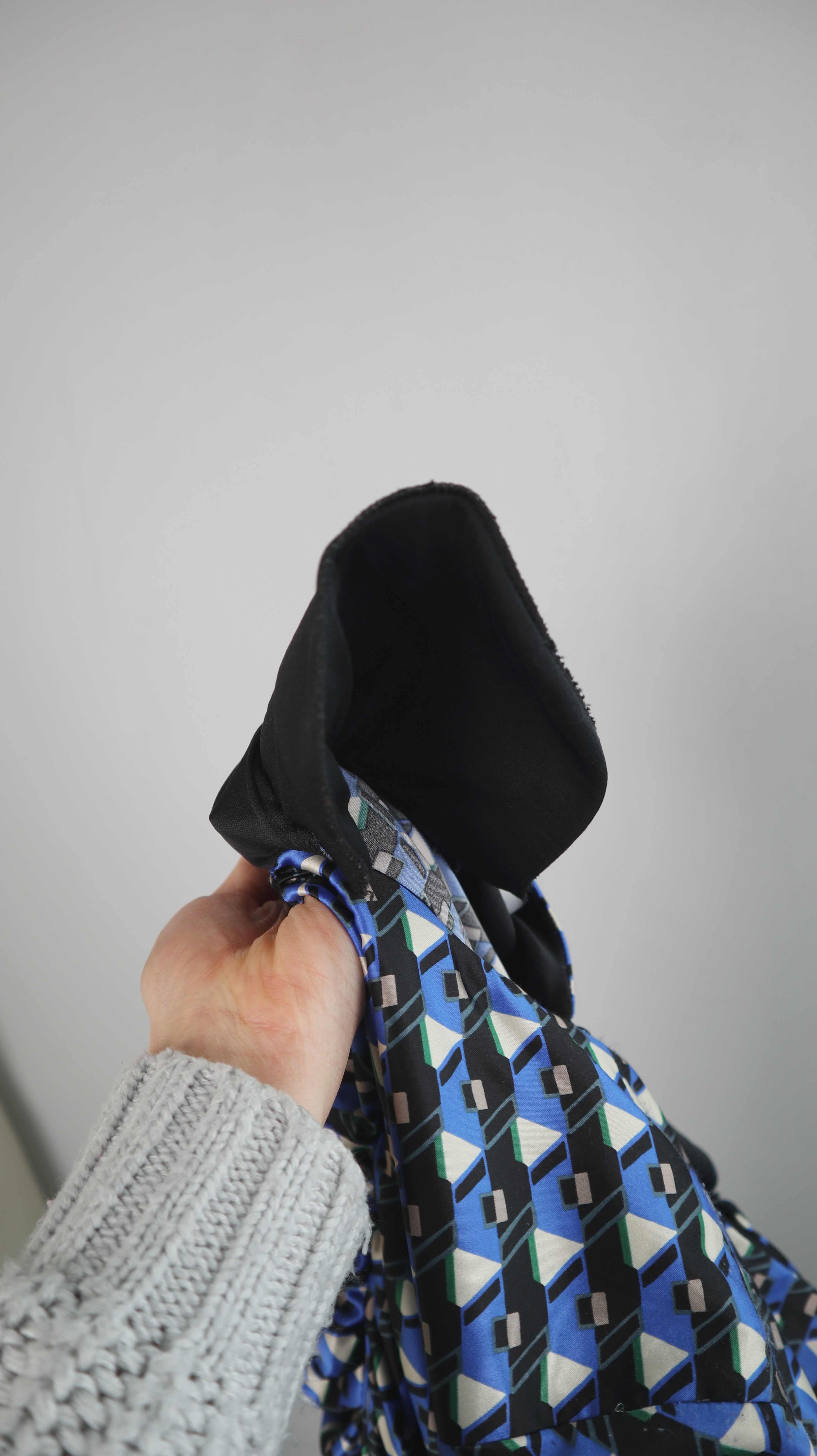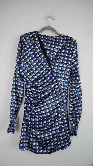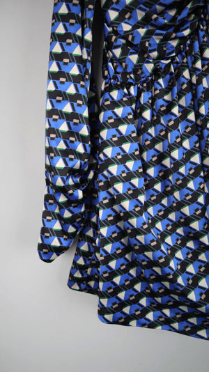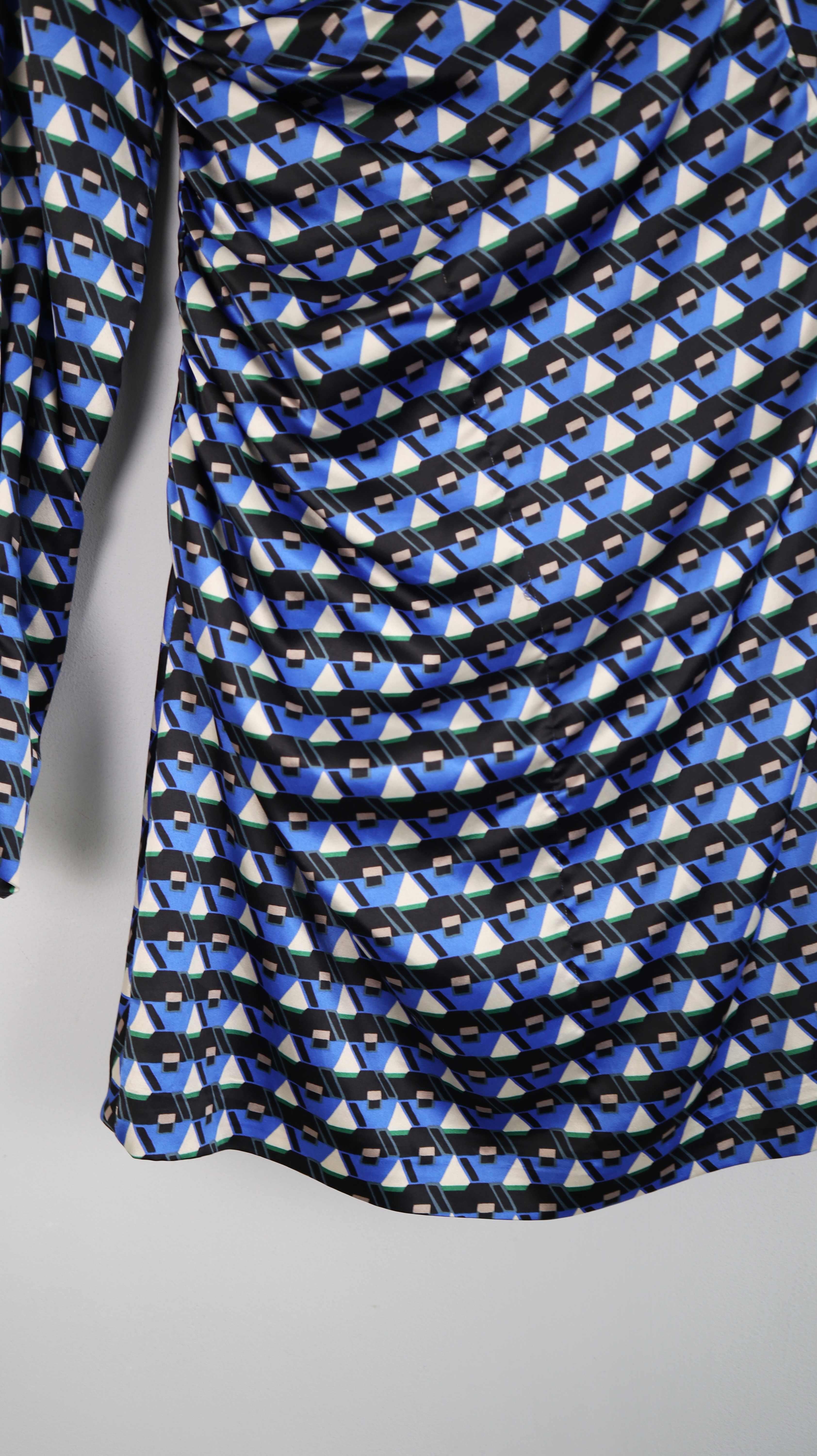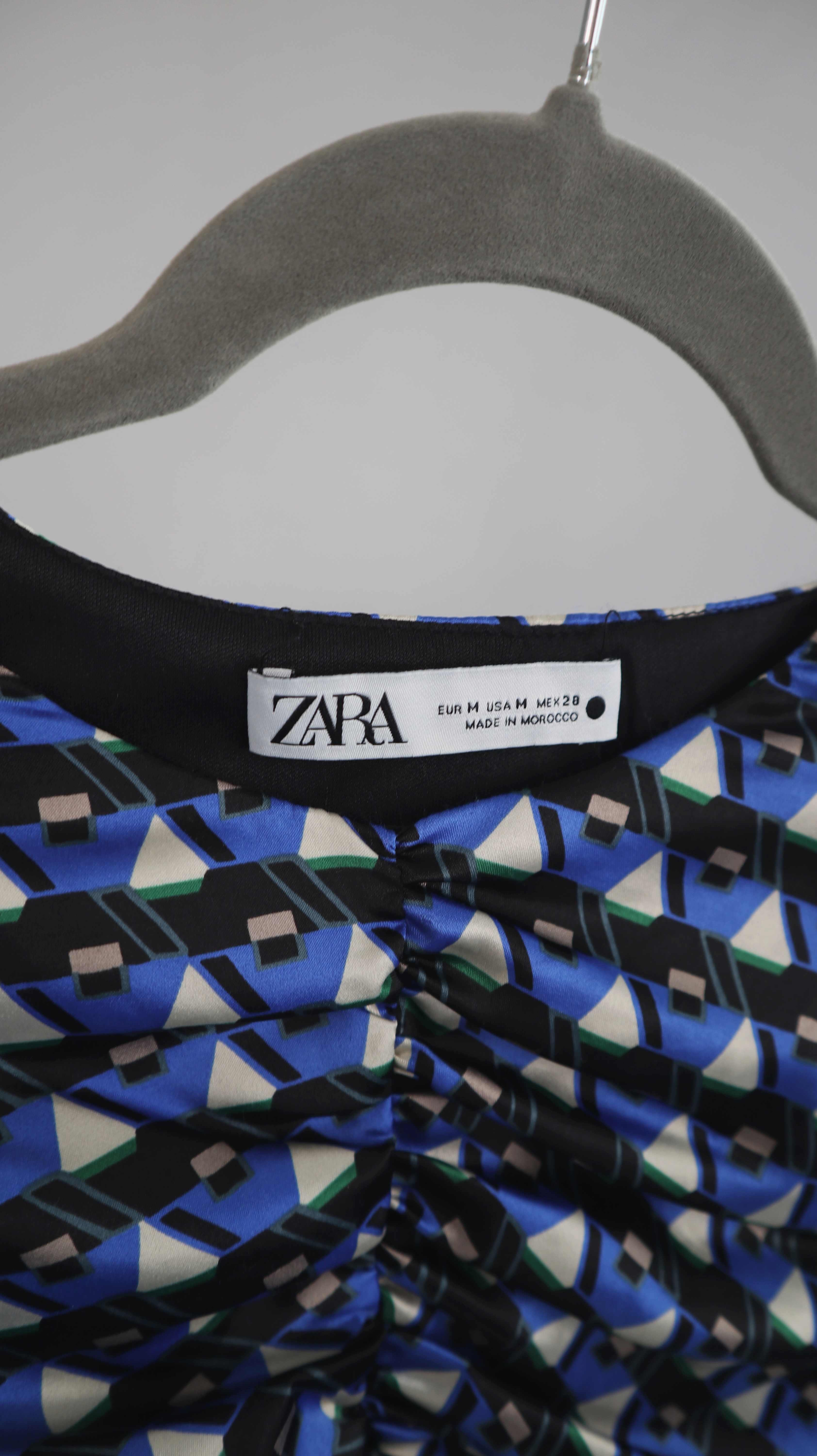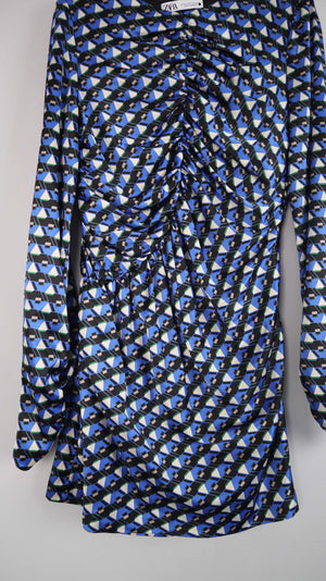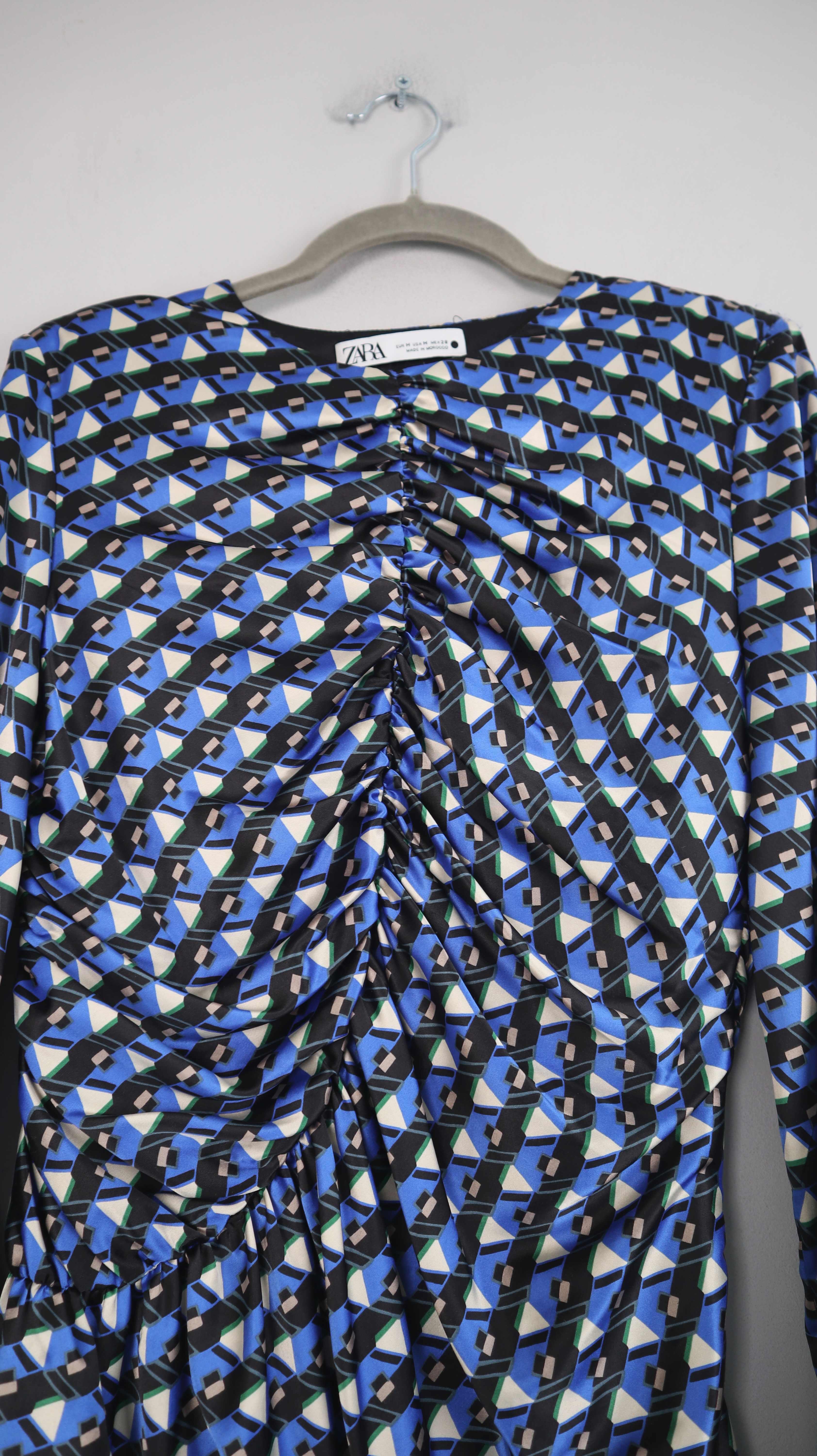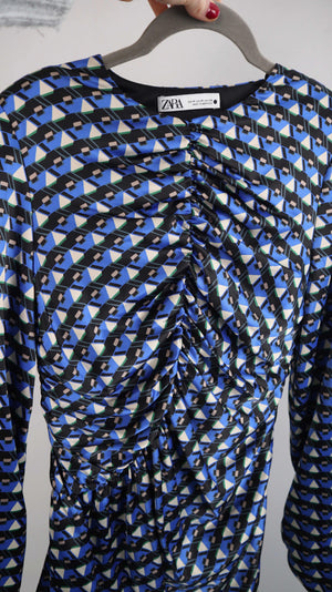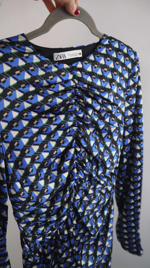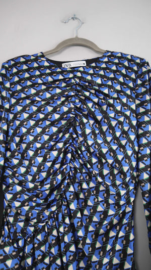 Zara Kleid Blau Midi Midikleid 38 M geometrisch langärmlig Etuikleid