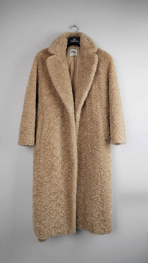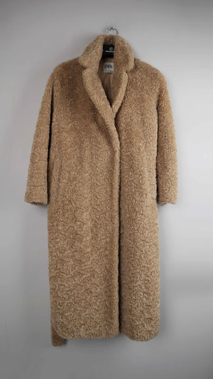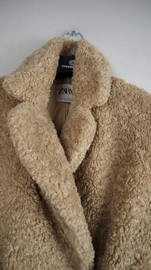 Zara Mantel braun beige Teddy Teddymantel 36 S Fellmantel