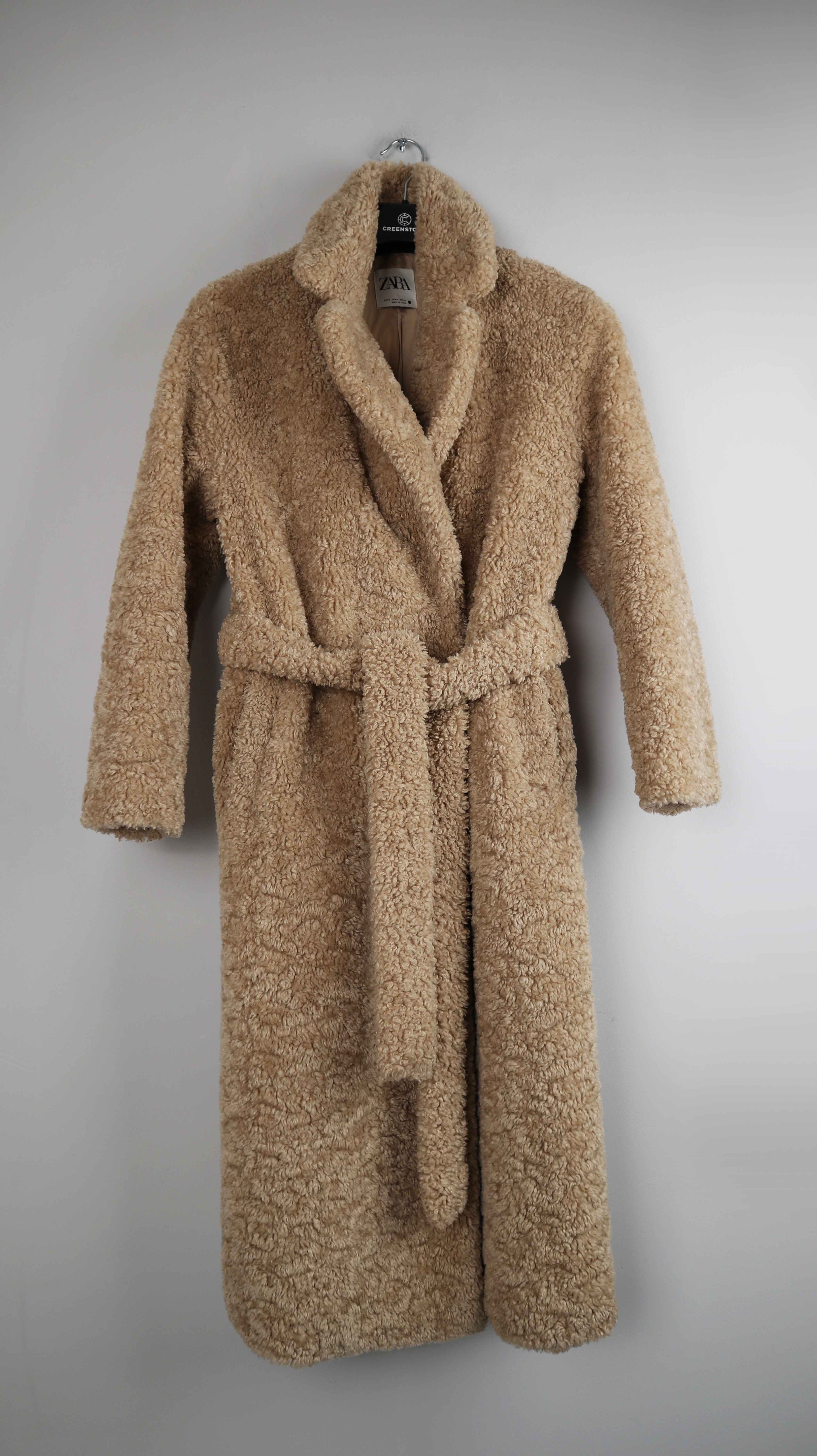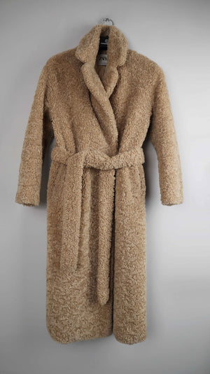 Brauner Teddymnatel von Zara in 36 S mit einem Gürtel. 46 cm Achselweite und 118 cm Länge. Plus Versand