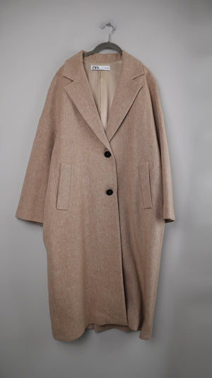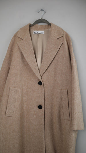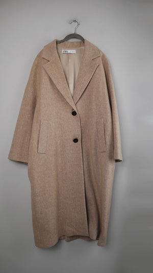 Langer beiger Mantel in 40 L von Zara. 51 cm Achselweite und 115 cm Länge. Plus Versand
