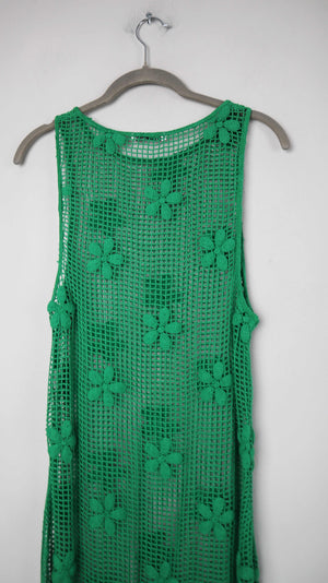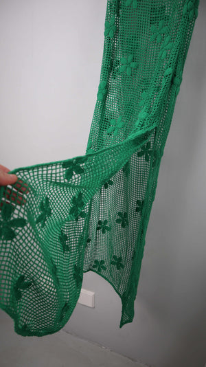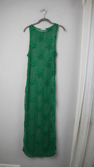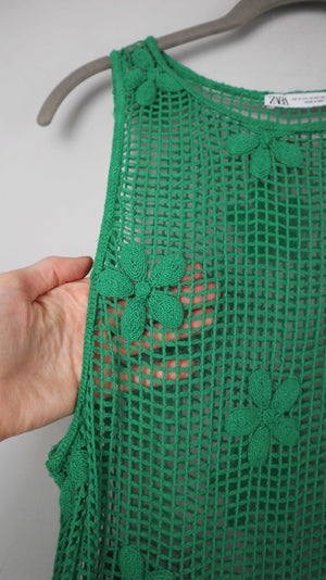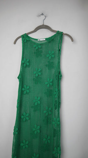 Zara Netzkleid Kleid 38 M Maxikleid Grün gehäkelt Häkelkleid Blumen