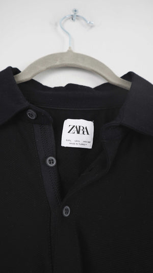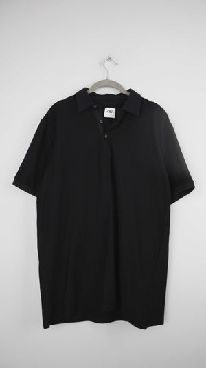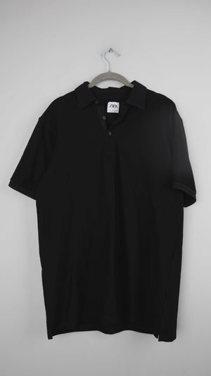Zara Polo Poloshirt schwarz L T-Shirt Oberteil basic einfarbig