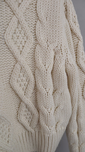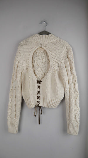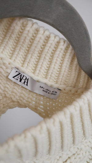 Zara Pullover Beige Creme 40 L Strickpullover gehäkelt Rückenausschnitt