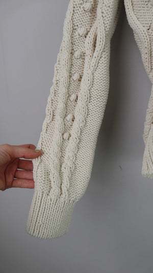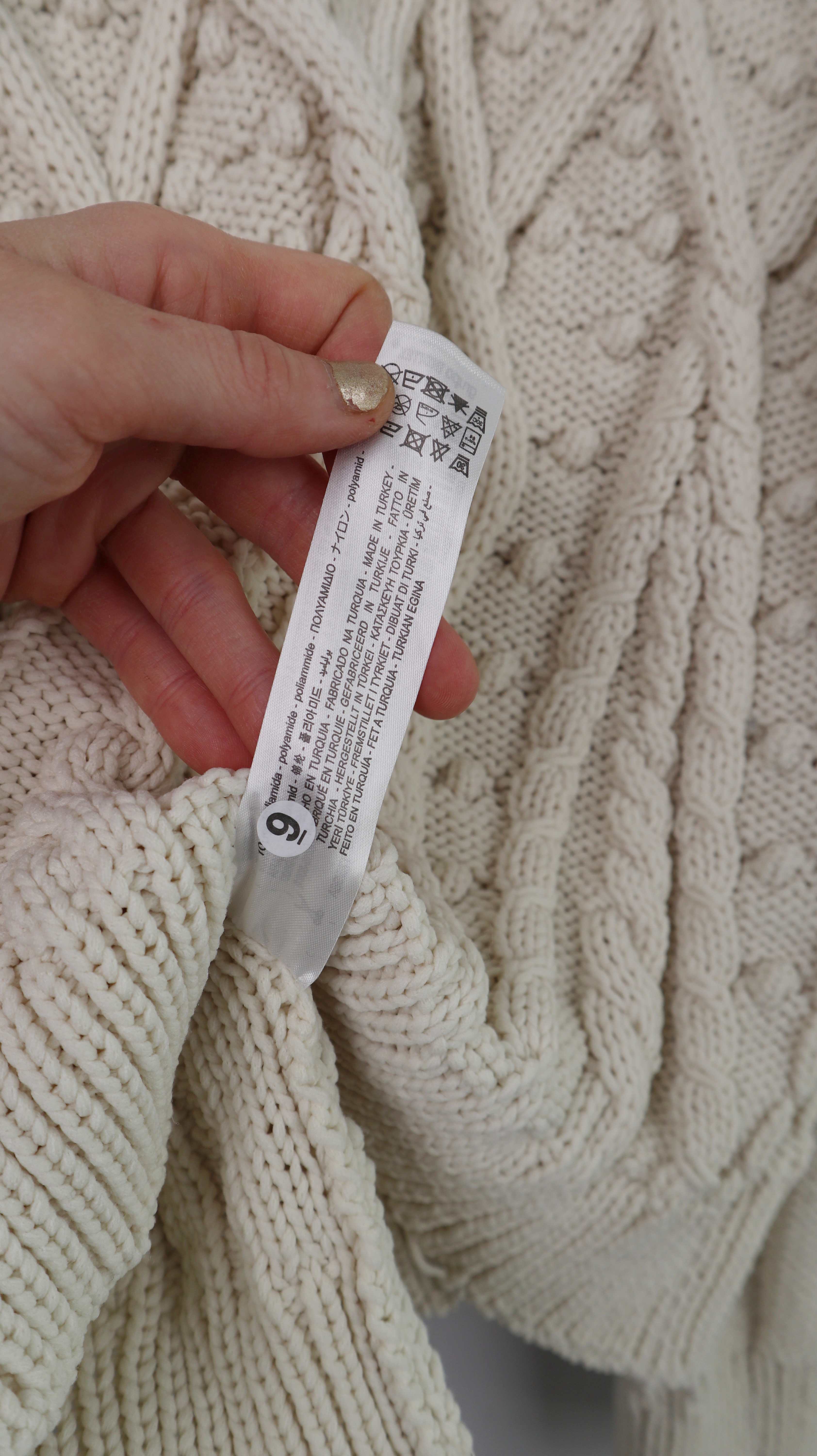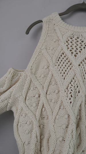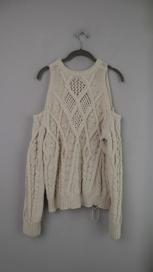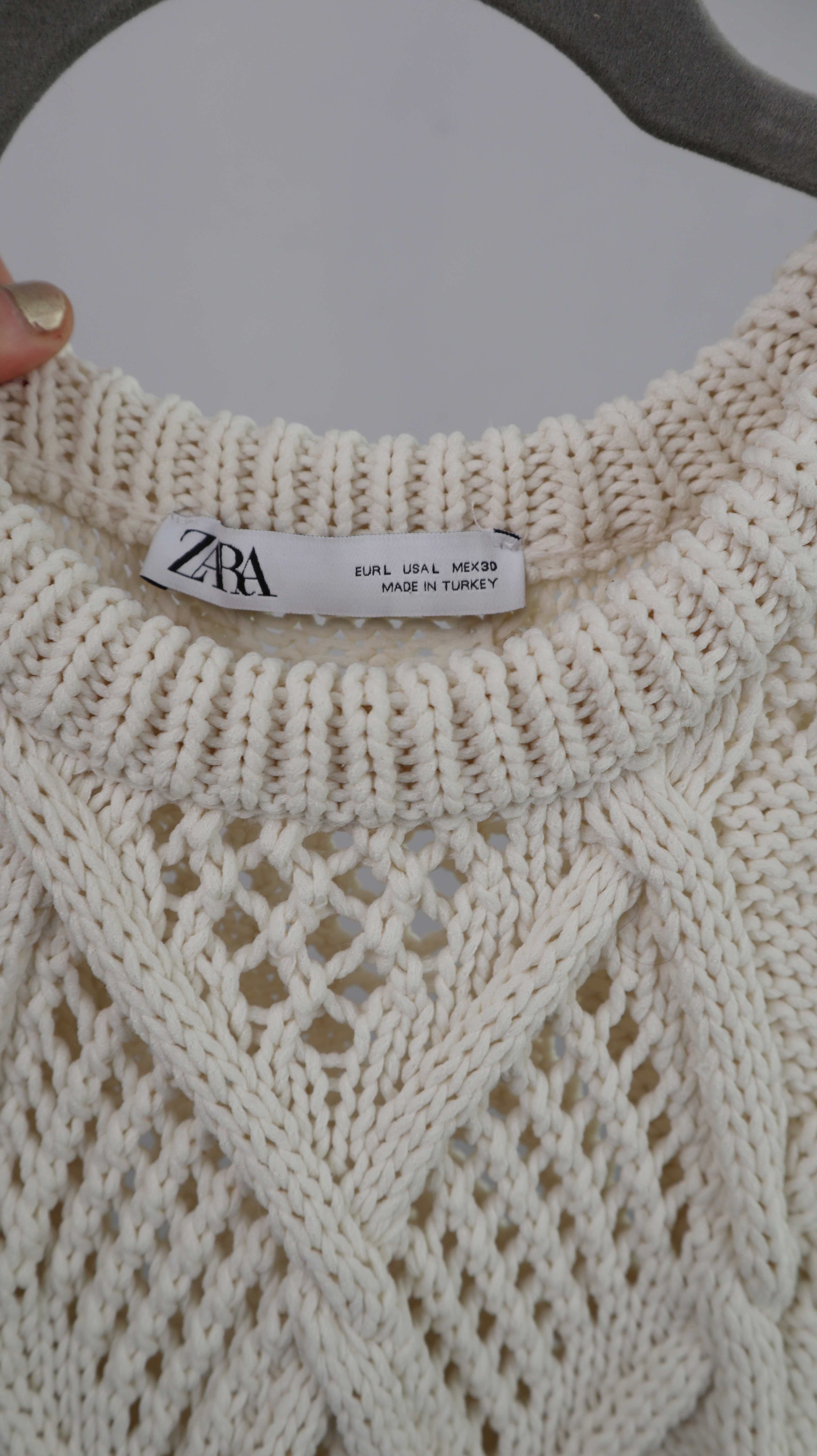 Zara Pullover Creme Beige 40 L Strickpullover Zopfmuster Schulterfrei