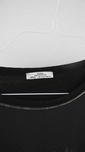 Zara Pullover Sweater Schwarz basic 36 S Print bedruckt