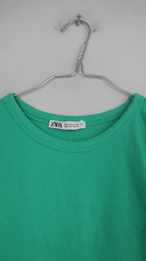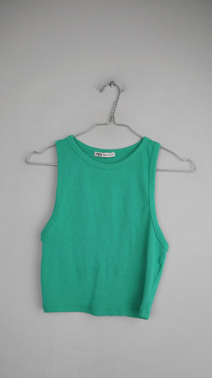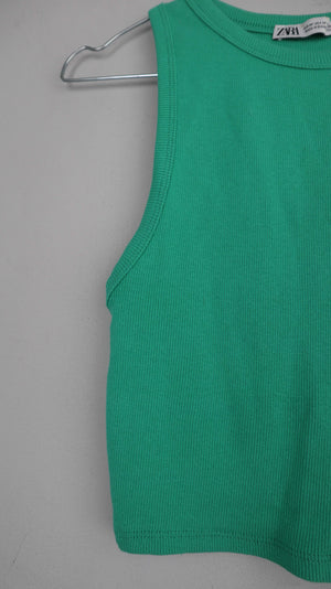 Zara Top grün 38 M basic Tanktop ripped einfarbig Oberteil