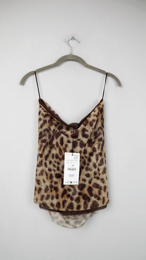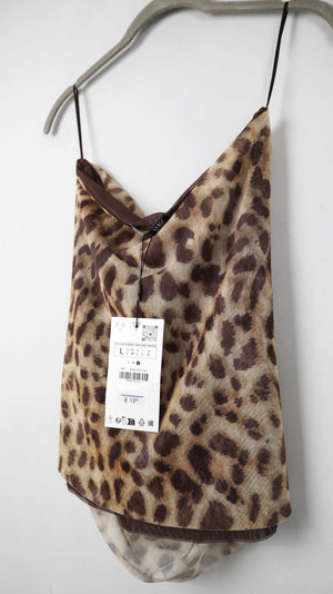 Zara Top leo neu animalprint schulterfrei 40 L braun