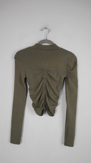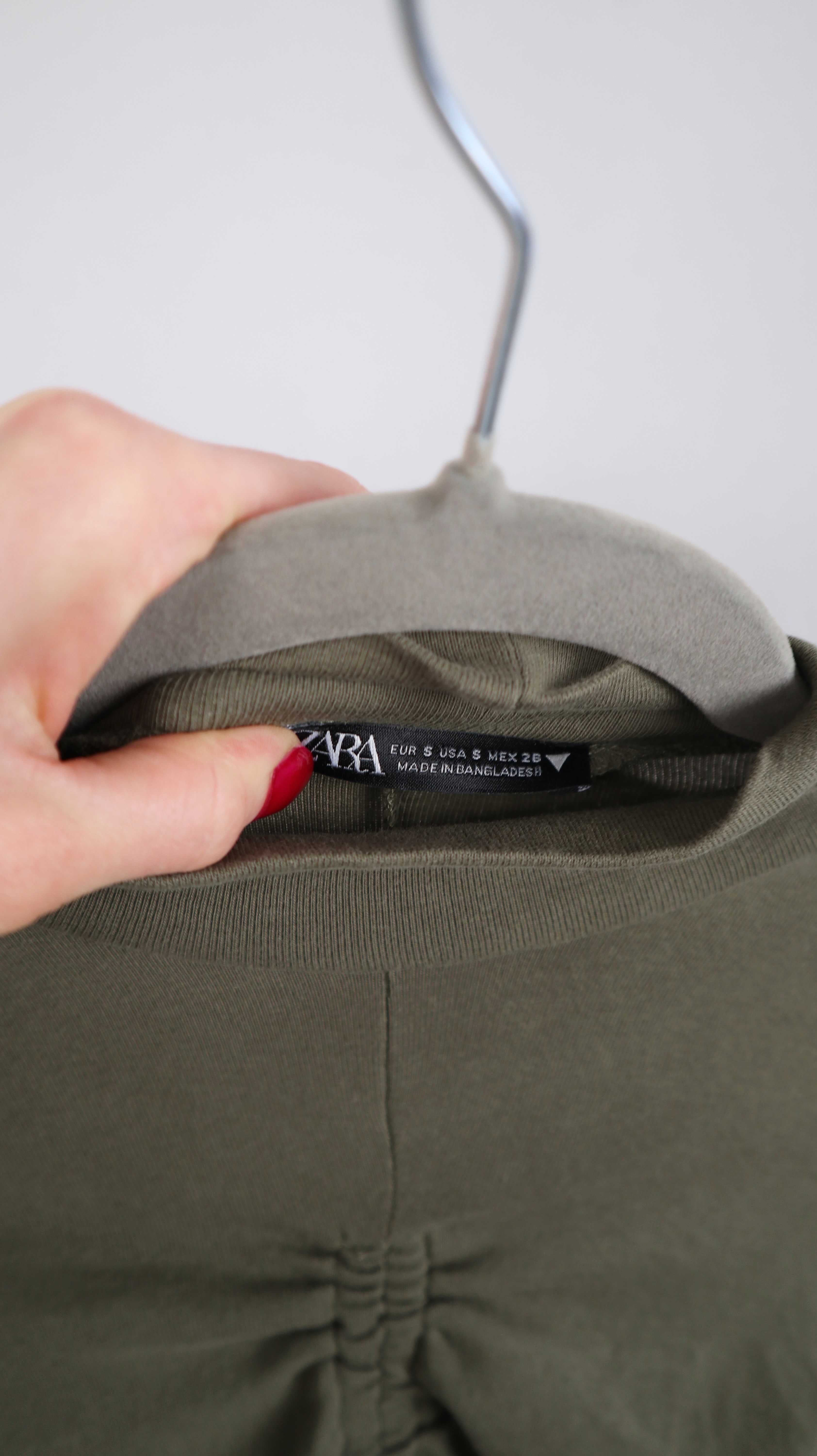 Zara Top Shirt Grün Longsleeve 36 S Dunkelgrün slim