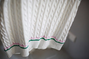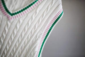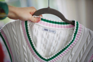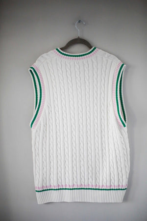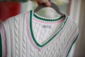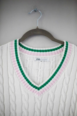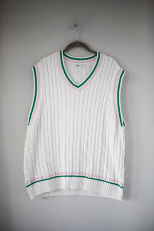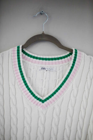 Zara Weste Weiß L Cardigan Zopfmuster Oberteil Grün Rosa Tennisweste